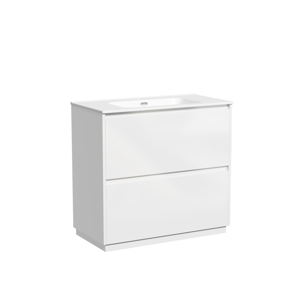 Тумба напольная Sancos Libra Floor 90 см LB90FW с доводчиком и раковиной-столешницей Element CN7002, цвет белый глянец.