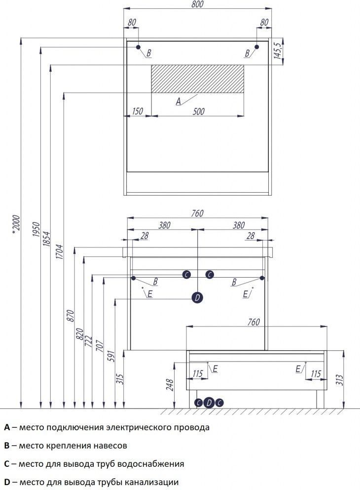 Характеристики тумба с раковиной Акватон (1A2302K1KPDA0)