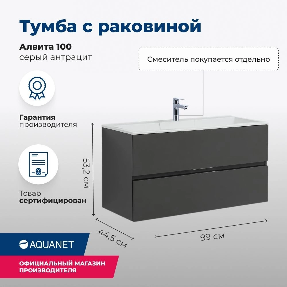 Тумба подвесная с раковиной Aquanet Алвита 100 см 00240112, серый антрацит