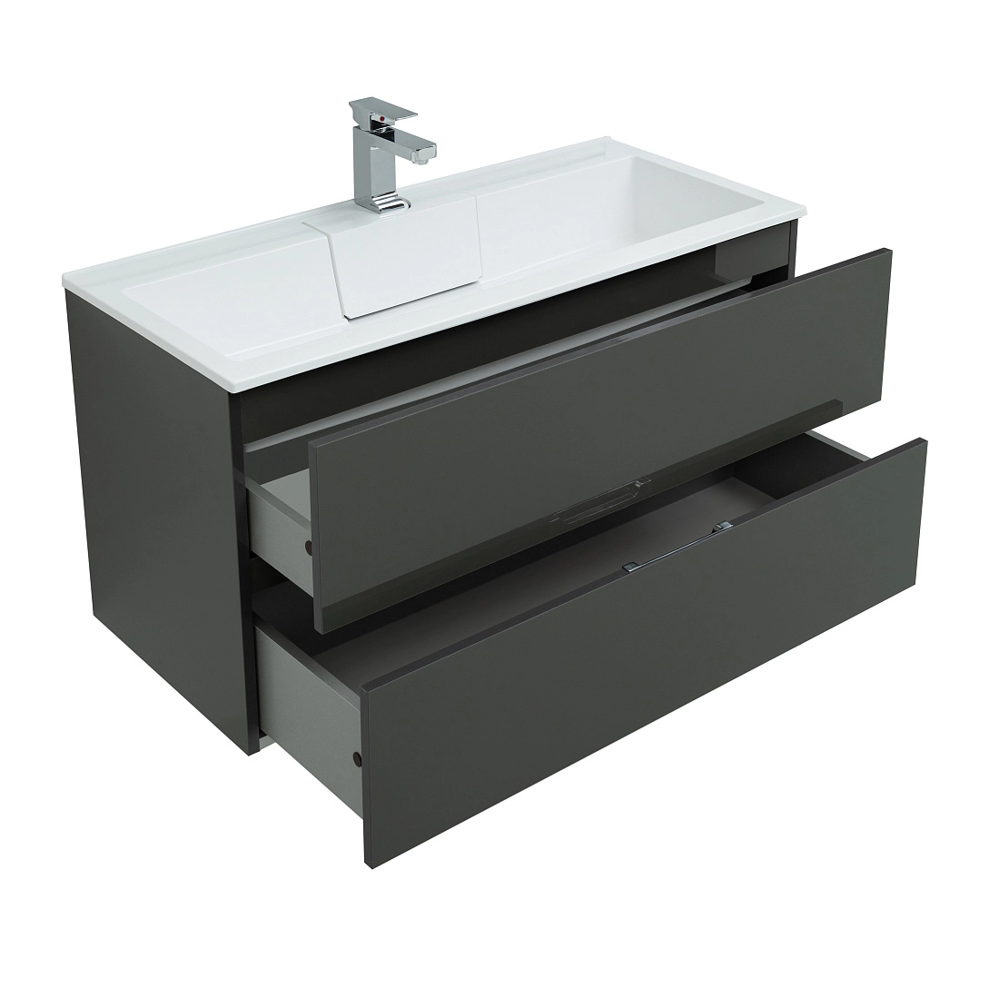 Тумба подвесная Aquanet Алвита 100 см с раковиной Aquanet Фортуна 100 см, 2 выдвижных ящика, цвет серый антрацит.