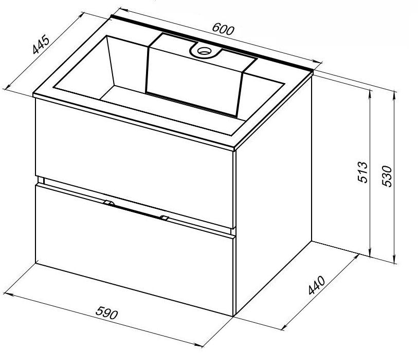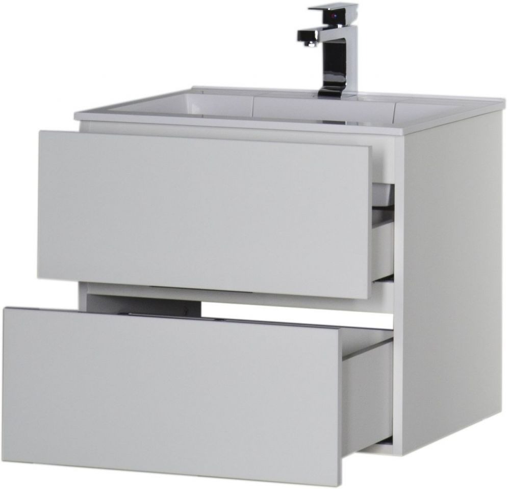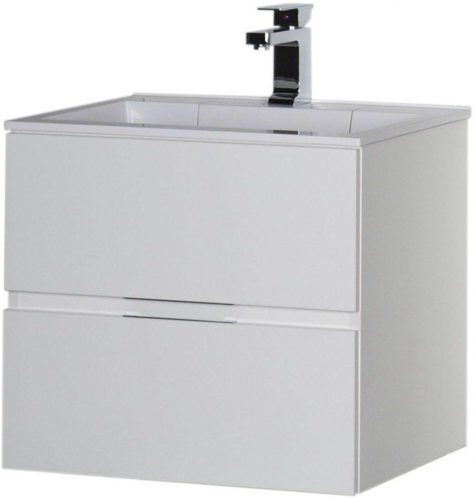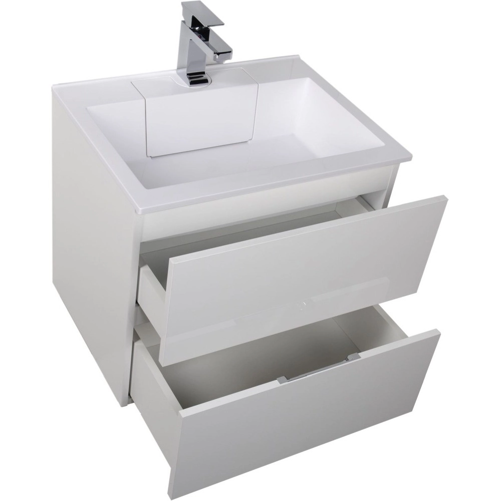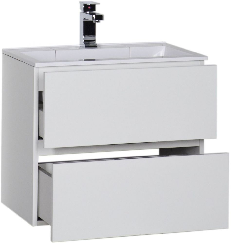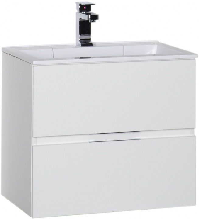 Тумба подвесная Aquanet Алвита 60 см с раковиной Aquanet Фортуна 60 см, 2 выдвижных ящика, цвет белый.