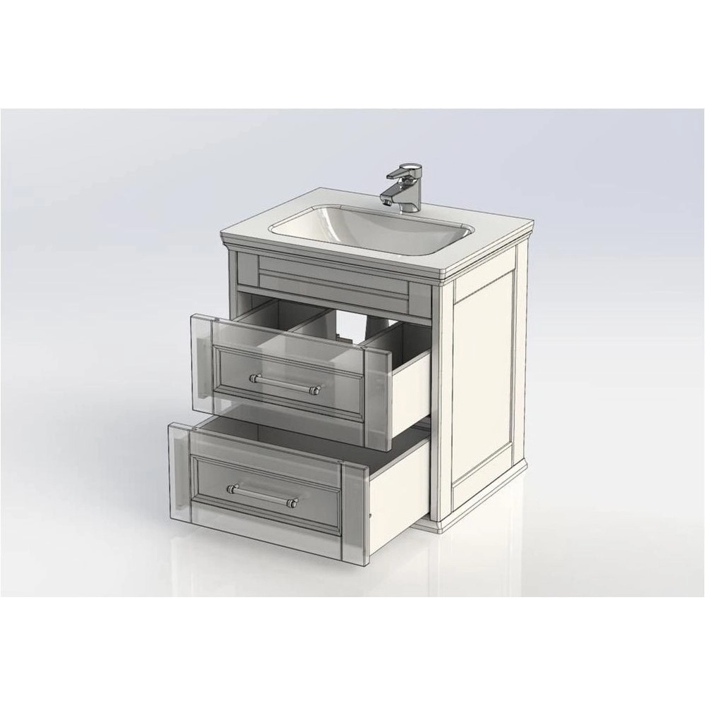 - Тумба Aquanet Бостон 60 белого цвета интересна внешне. Фрезеровка по белоснежным матовым фасадам и по боковым ее частям придает внешнему виду изделия шириной 60 см достойный и благородный вид, свойственный классике. Но утонченные ручки производства известной турецкой фирмы System, словно ниточки поблескивающие на фасадах, визуальная легкость изделия напоминает о модерне.