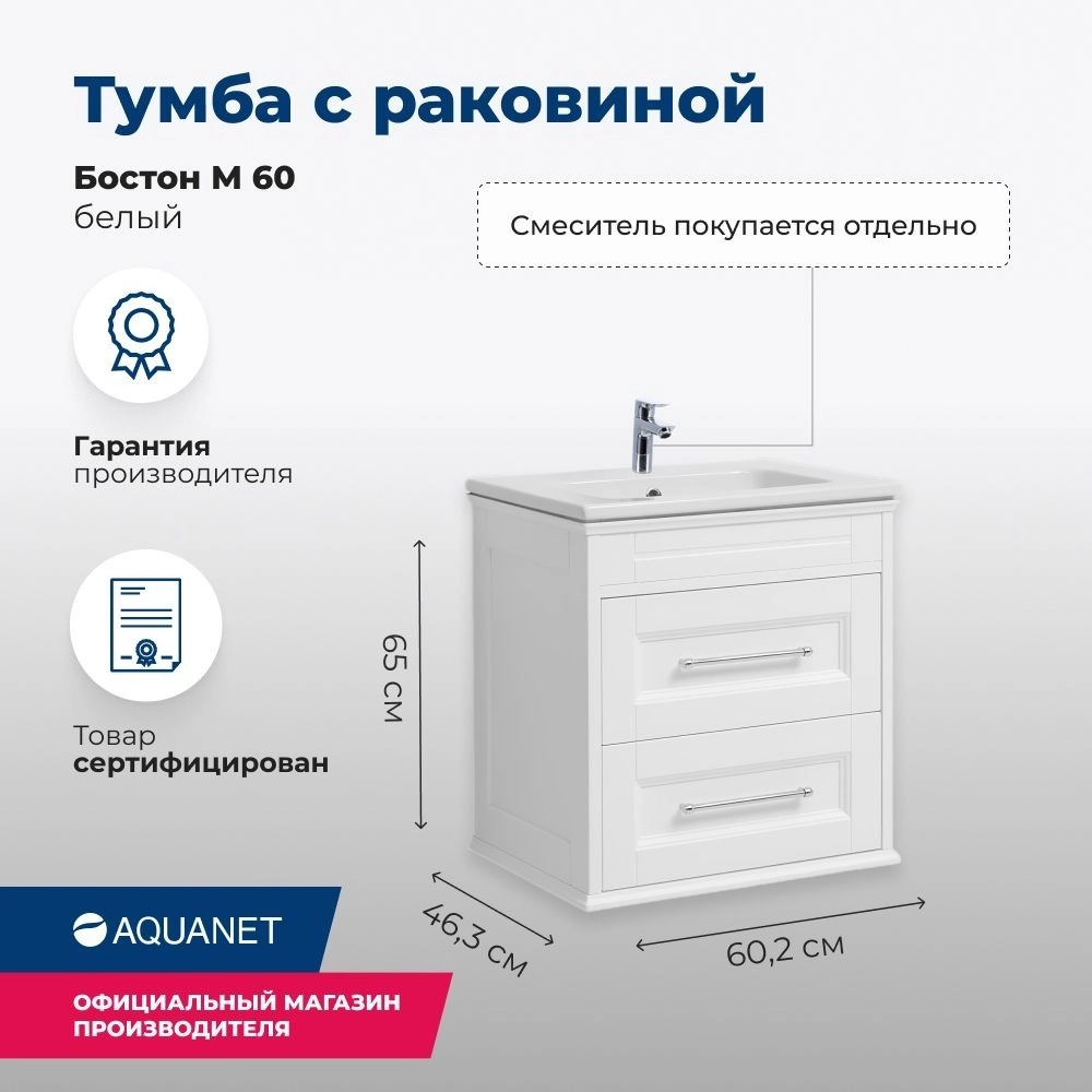 Тумба подвесная с раковиной Aquanet Бостон М 60 см 00209679, белый