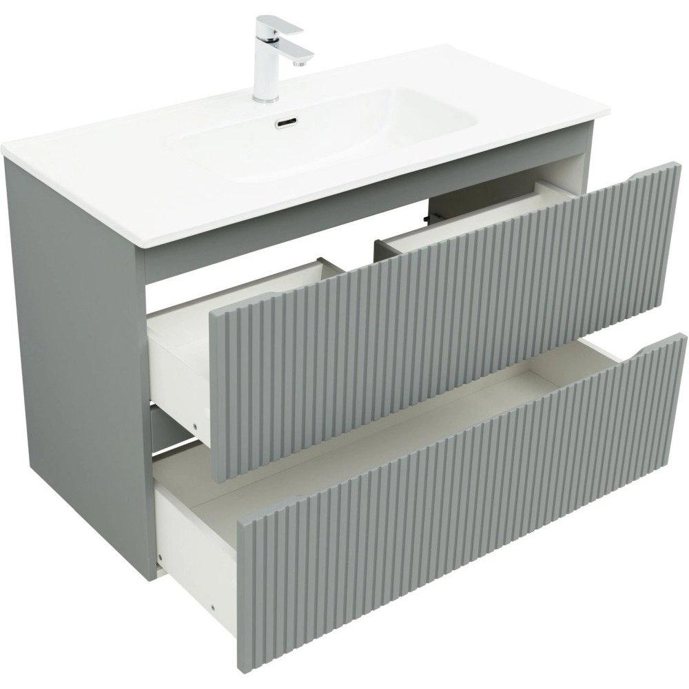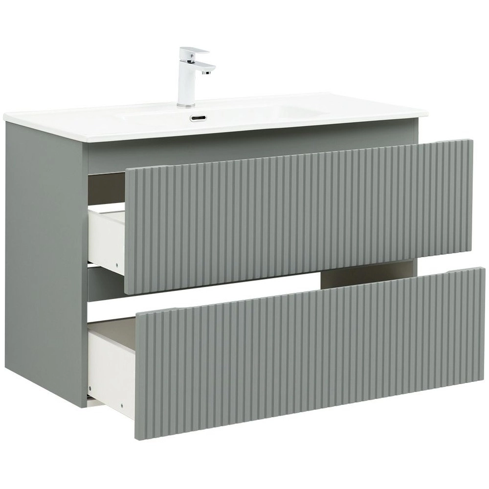 Тумба подвесная Aquanet Джейн (Flat) 100 см с раковиной Aquanet Flat 100 см, 2 выдвижных ящика, цвет мисти грин.