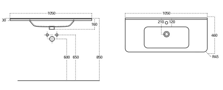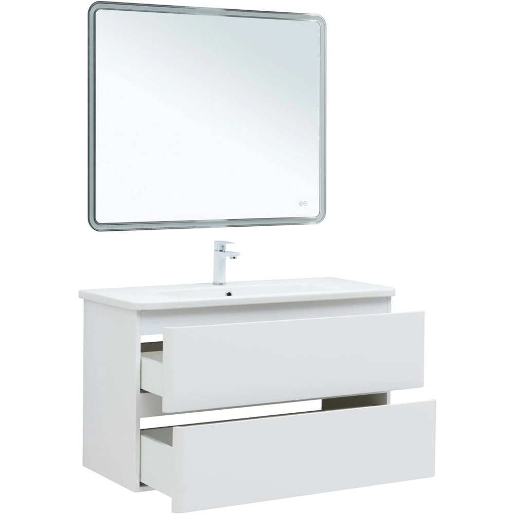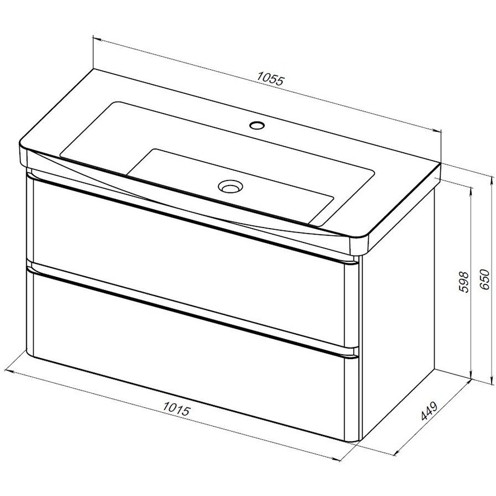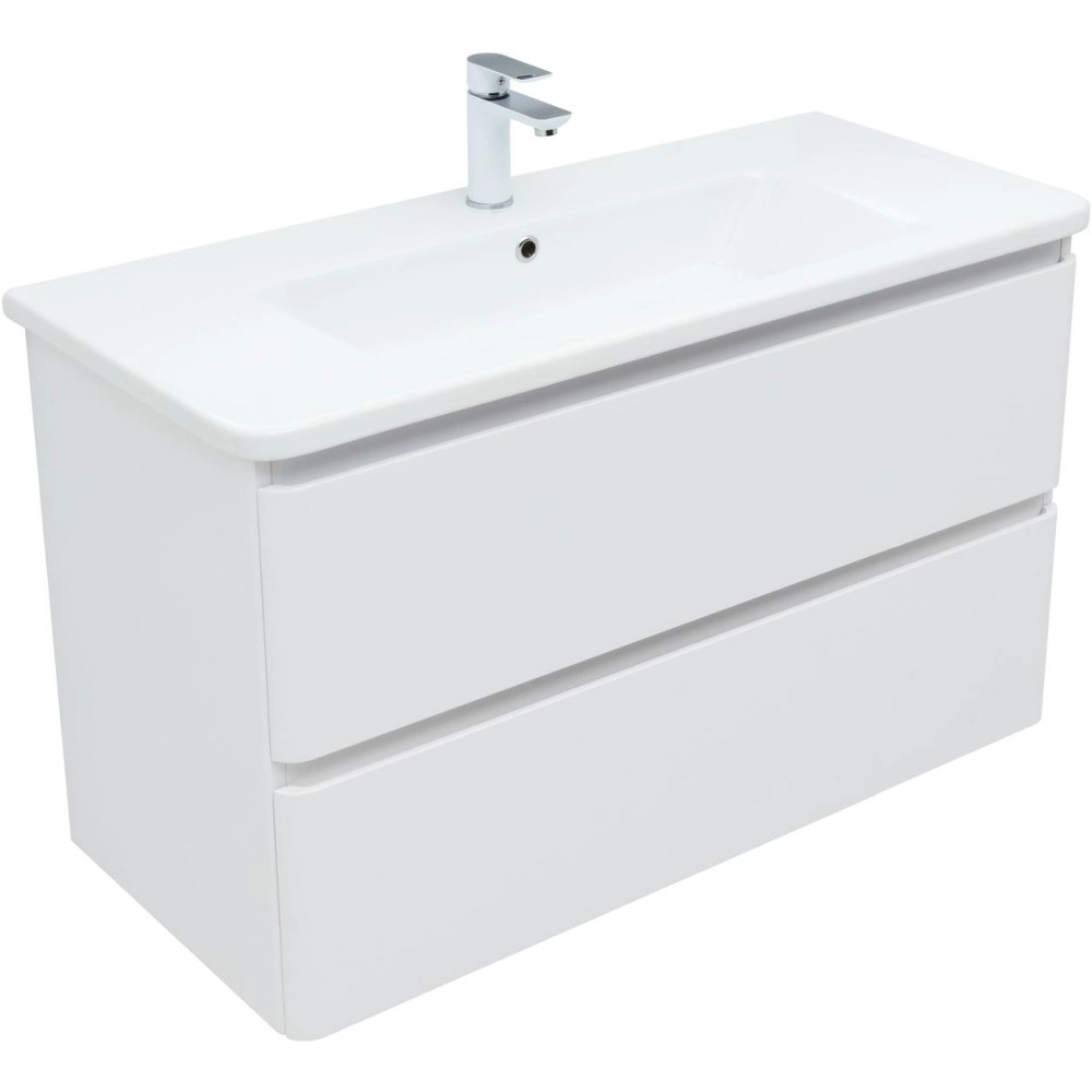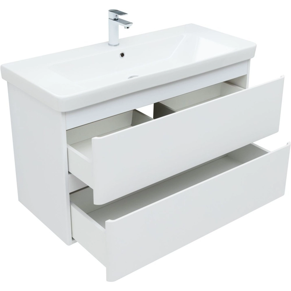 Тумба подвесная Aquanet Эмбер 105 см с раковиной Sanovit Urban 105 см 12105-KL, 2 выдвижных ящика, цвет белый матовый.