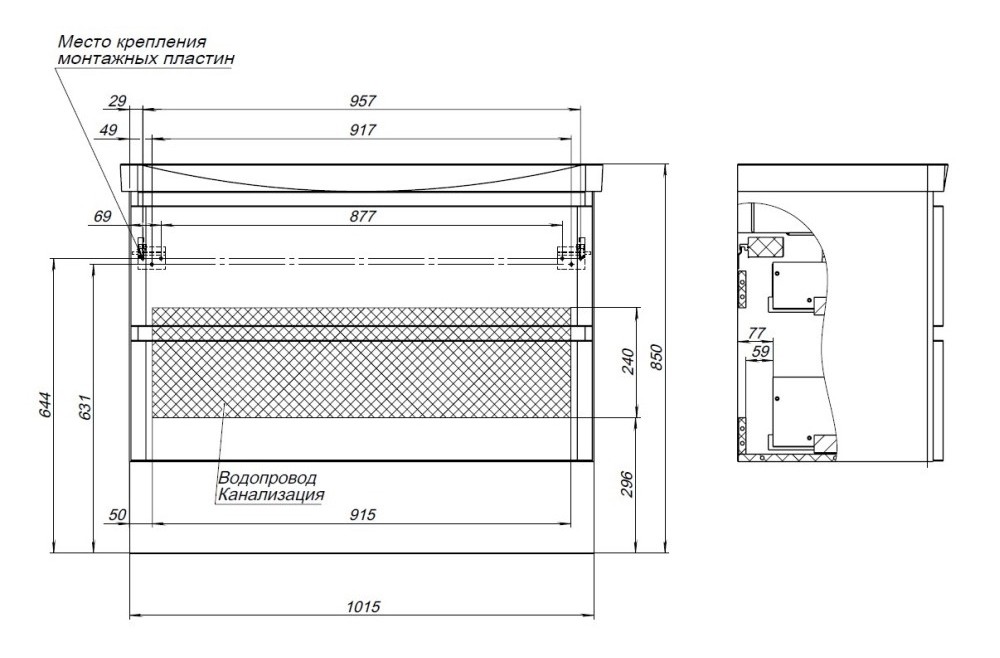 - Тумбы и пенал возможно установить на универсальные опоры высотой 200 мм.