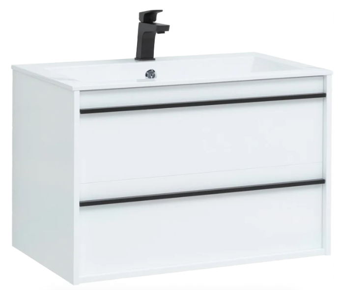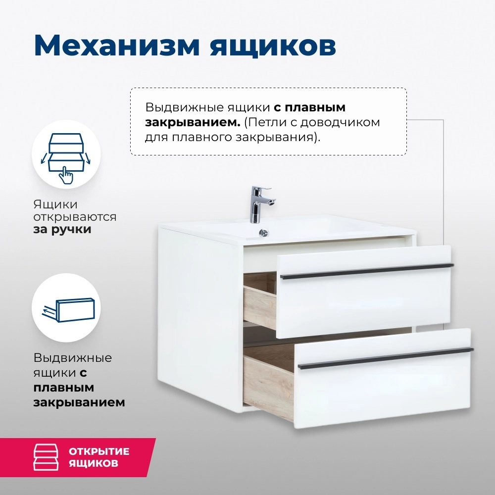 Тумба подвесная Aquanet Lino 80 см с раковиной Aquanet Электра 80 см, 2 выдвижных ящика с доводчиком, цвет белый матовый.