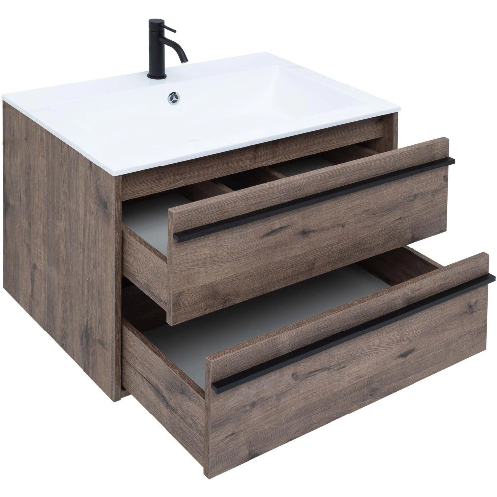 Тумба подвесная Aquanet Lino 80 см 00253912 с раковиной Aquanet Электра 80, 2 выдвижных ящика, цвет дуб веллингтон.
