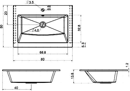- Корпус и фасады тумбы шириной 80 см – из влагостойкого ЛДСП.