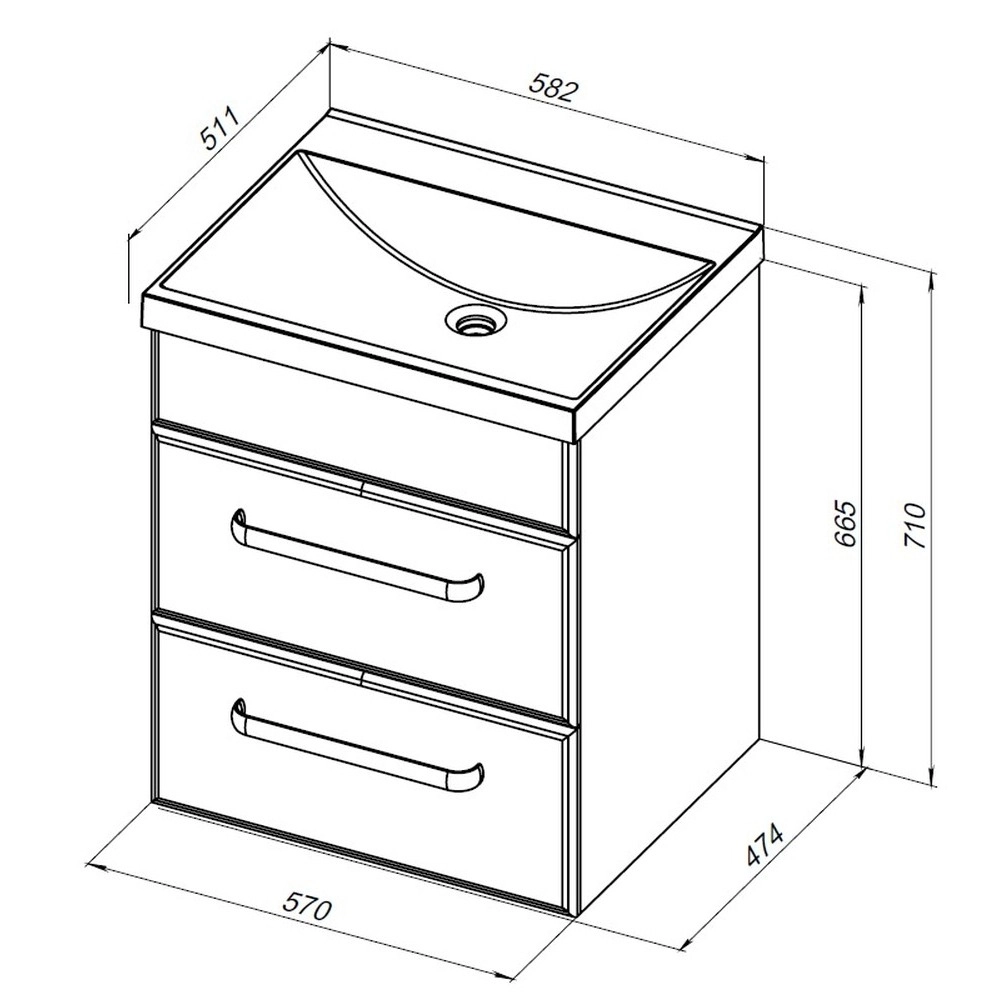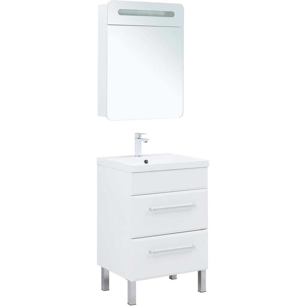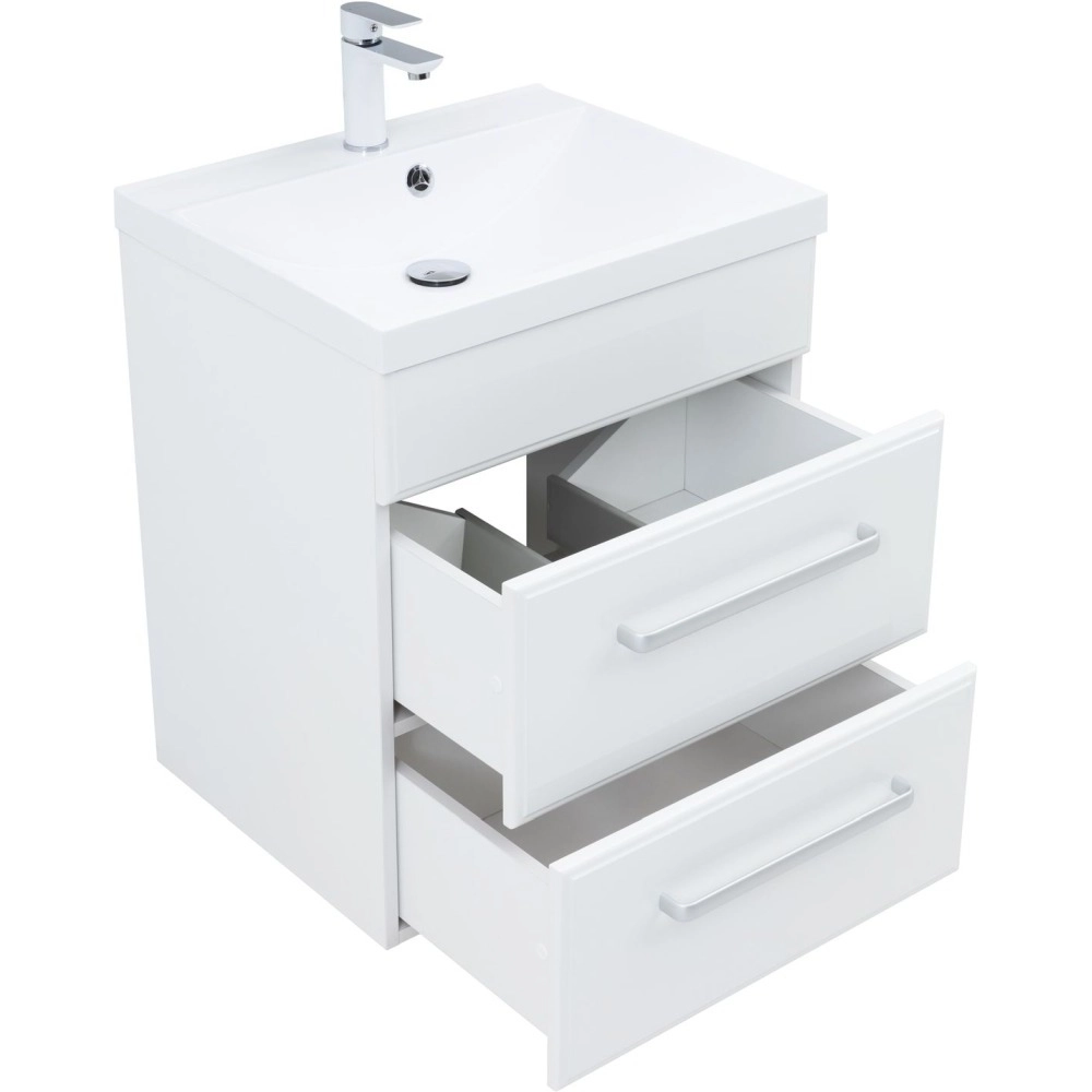 Тумба подвесная Aquanet Лукка 60 см с раковиной Aquanet Нота 58 см, 2 ящика, цвет белый.