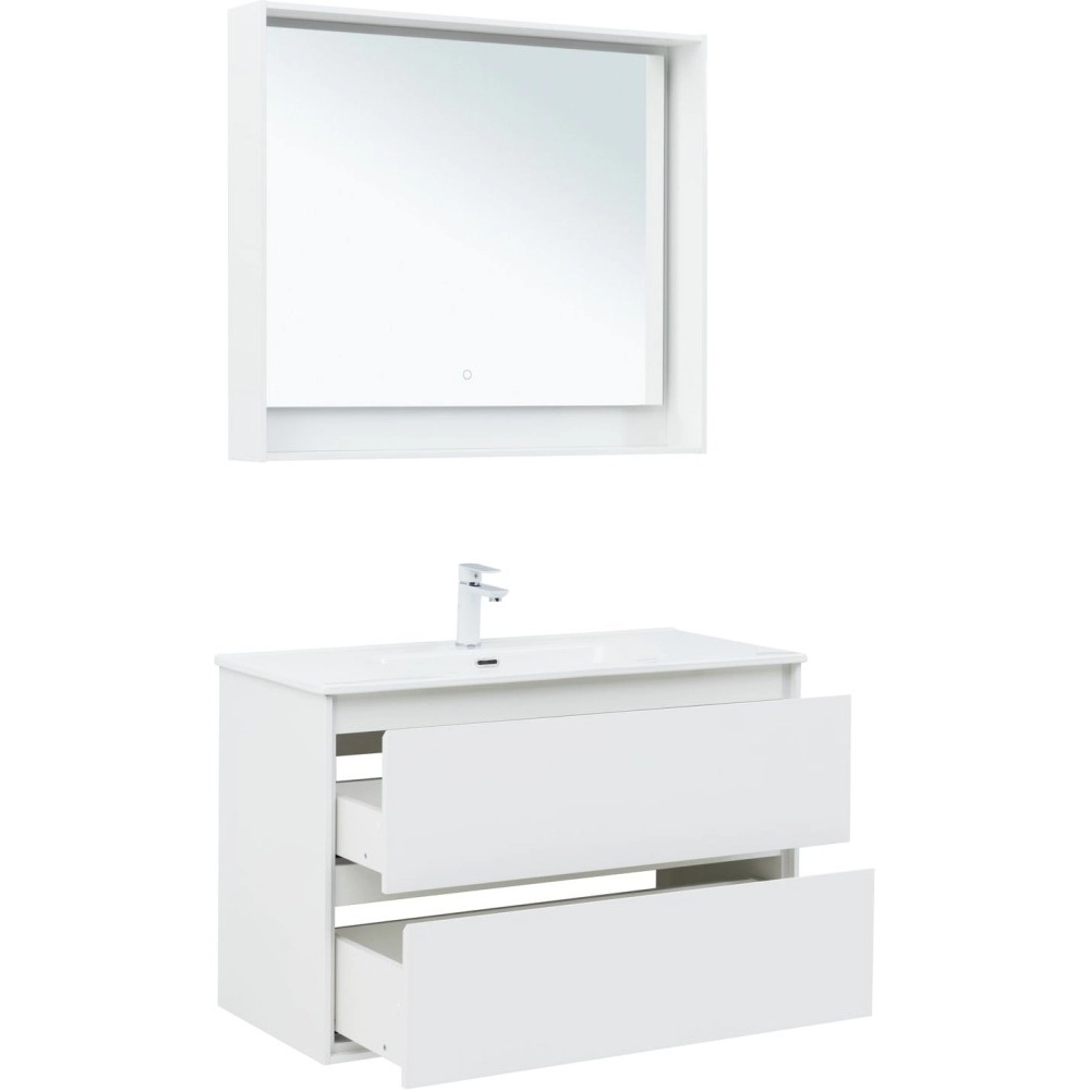 Тумба подвесная Aquanet Милан 100 см с раковиной Aquanet Flat 100 см, 2 выдвижных ящика, цвет белый глянец.