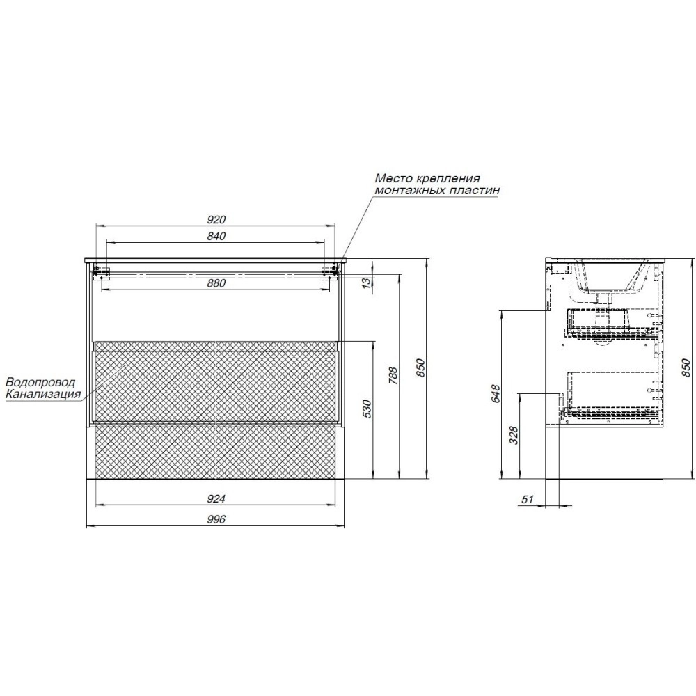 Кроме того, надёжные навесы, способные выдерживать нагрузки до 130 кг, обеспечивают уверенную поддержку раковины и всего оборудования. Внутреннее пространство тумбы организовано с умом: выдвижные ящики из ВЛДСП имеют прочное дно и направляющие частичного выдвижения, что делает их идеальными для хранения туалетных принадлежностей. Специальная пластиковая вставка под сифон в сером цвете завершает функционал тумбы, сохраняя при этом чистоту и порядок в ванной комнате.