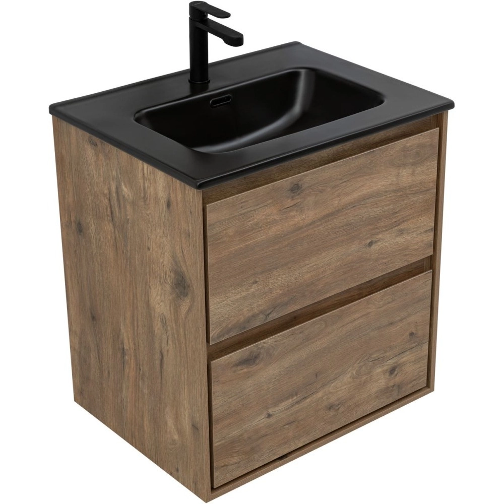 Тумба подвесная Aquanet Милан 60 см 00336377 с раковиной Aquanet Flat 60, 2 выдвижных ящика, цвет дуб рустикальный.