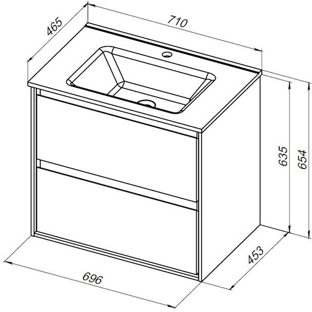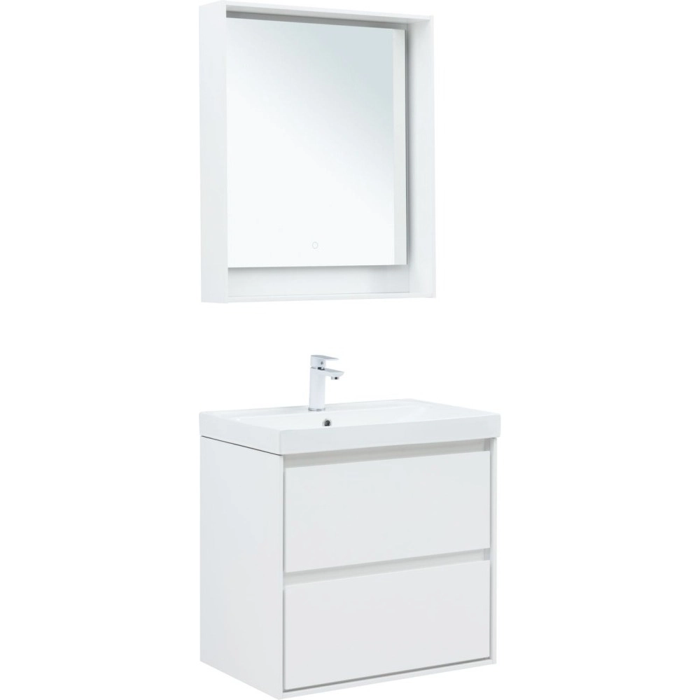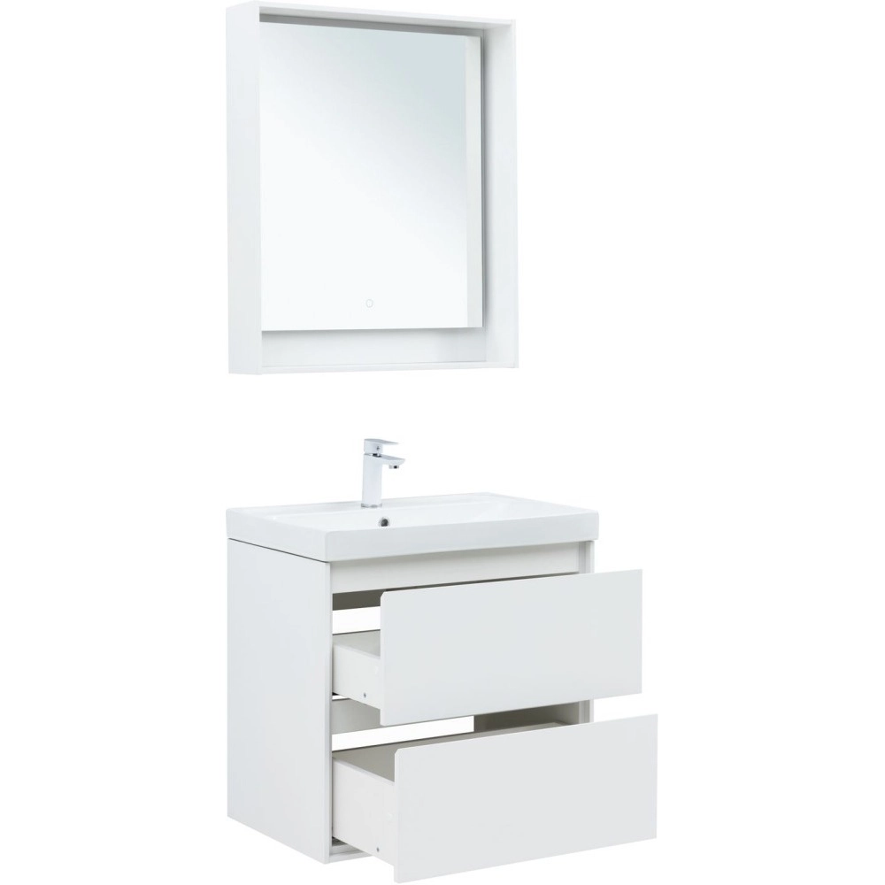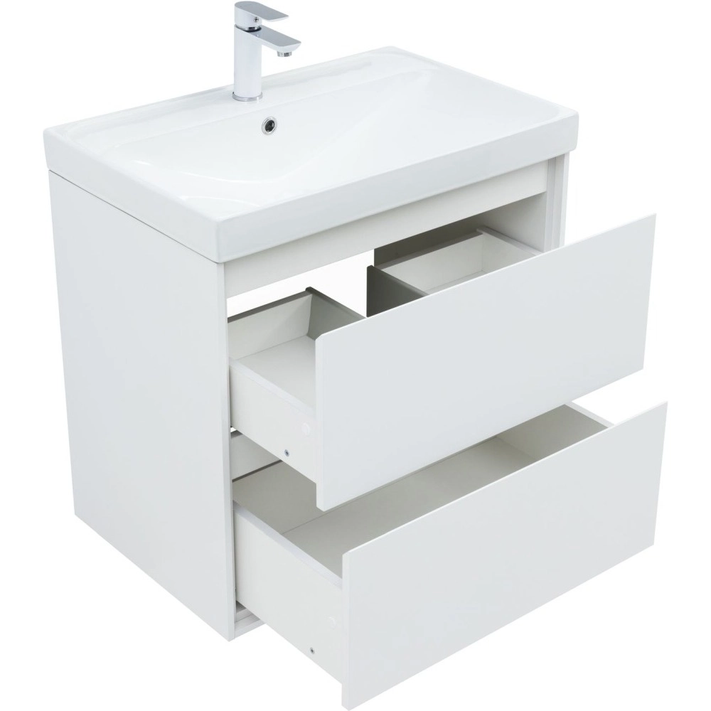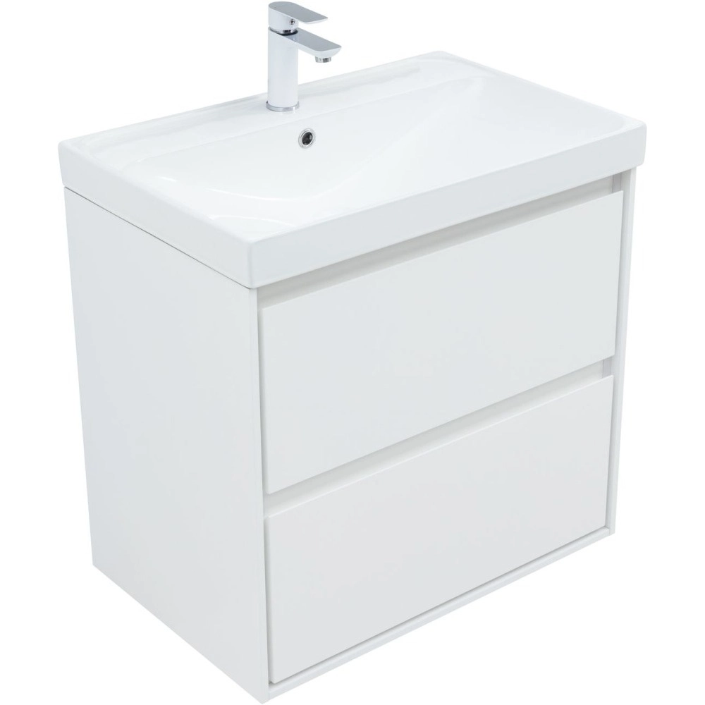 Тумба подвесная Aquanet Милан 70 см с раковиной Aquanet Flash 70 см, 2 выдвижных ящика, цвет белый глянец.