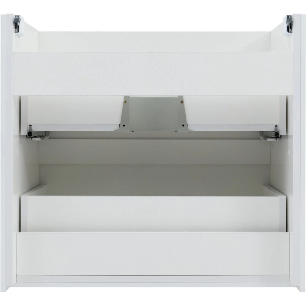 Кроме того, надёжные навесы, способные выдерживать нагрузки до 130 кг, обеспечивают уверенную поддержку раковины и всего оборудования. Внутреннее пространство тумбы организовано с умом: выдвижные ящики из ВЛДСП имеют прочное дно и направляющие частичного выдвижения, что делает их идеальными для хранения туалетных принадлежностей. Специальная пластиковая вставка под сифон в сером цвете завершает функционал тумбы, сохраняя при этом чистоту и порядок в ванной комнате.