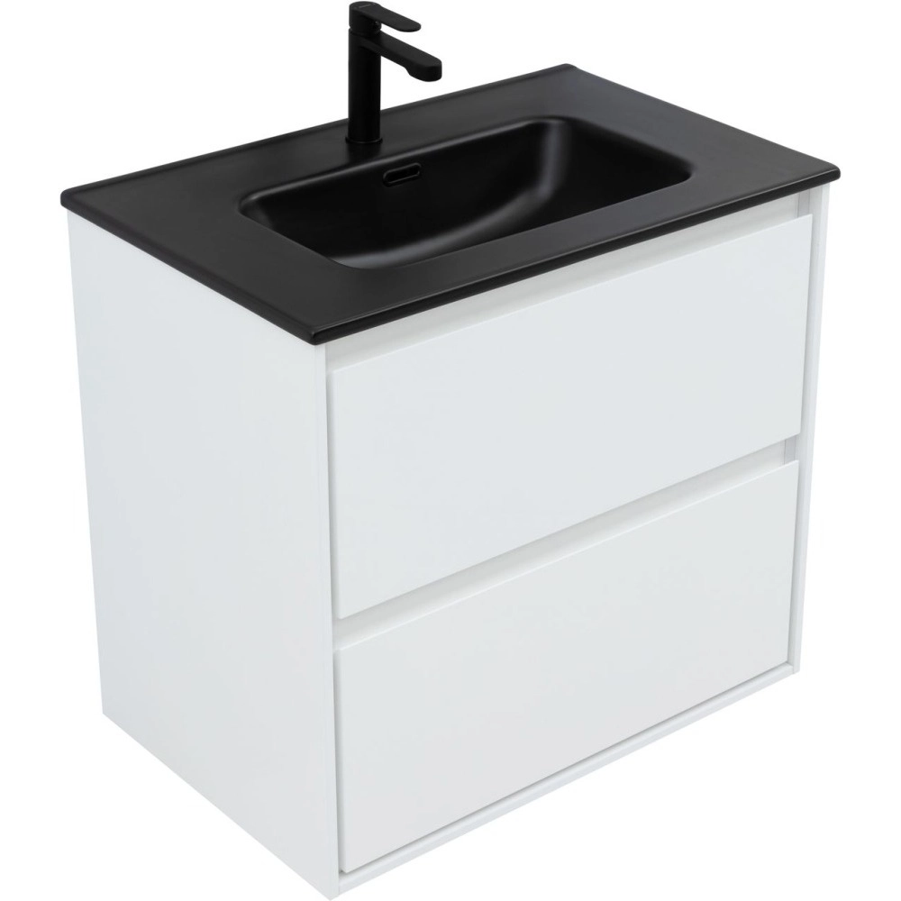 Тумба подвесная Aquanet Милан 70 см с раковиной Aquanet Flat 70 см, 2 выдвижных ящика, цвет белый глянец.