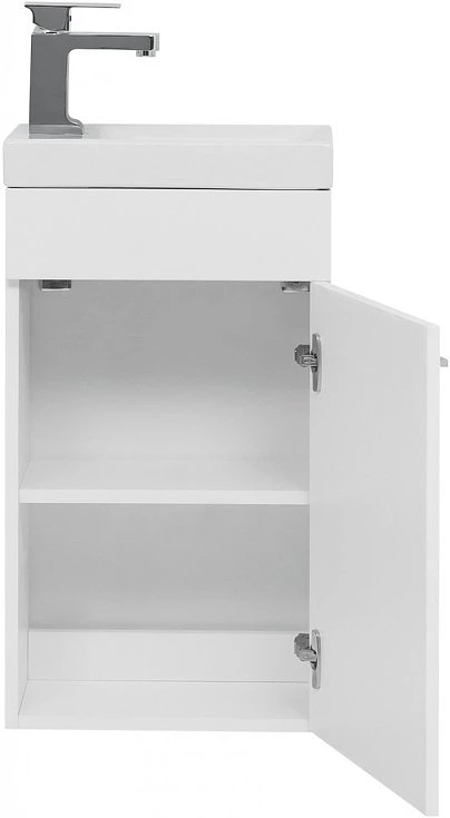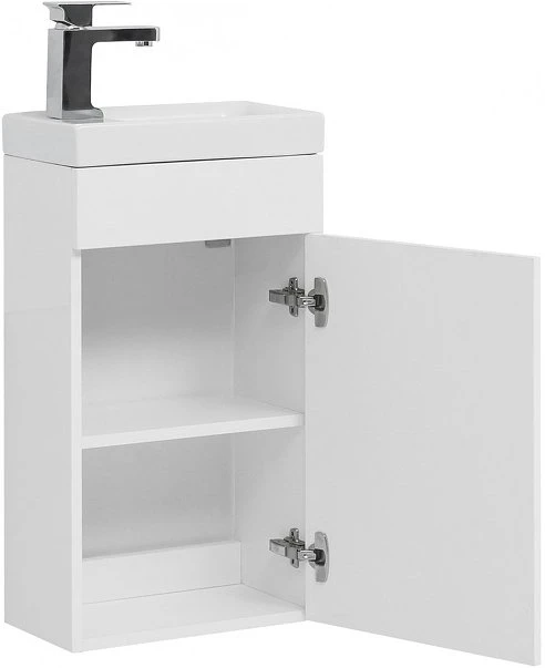 - Тумба под раковину Aquanet «Нота» 40 R (Moduo) белого цвета — отличный вариант для небольших по площади ванных комнат или санузлов.