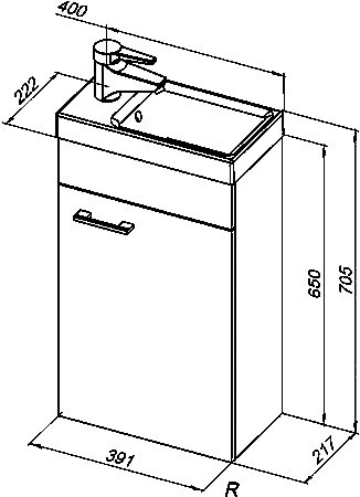 - Модель габаритами 391х217х650 мм не займет много места, позволит организовать пространство, разместив на полке средства для стирки или гигиенические принадлежности.