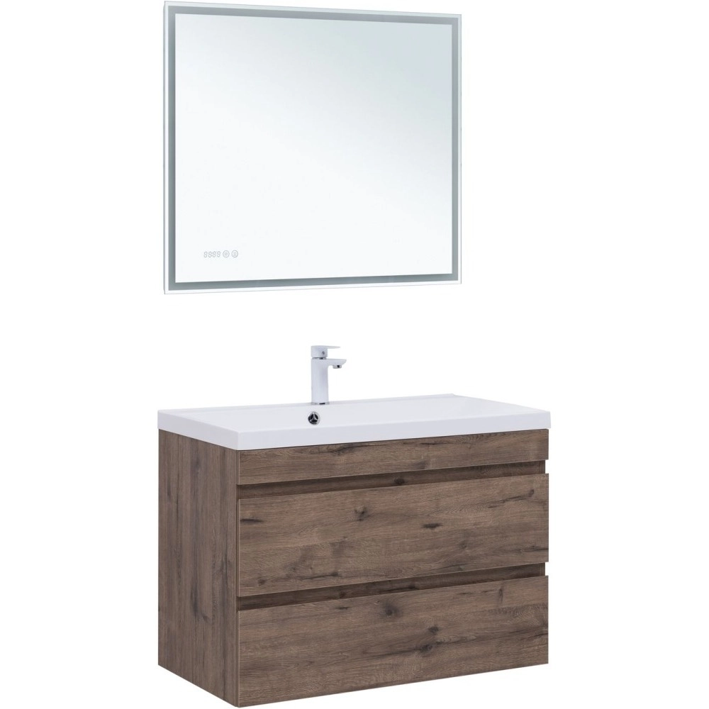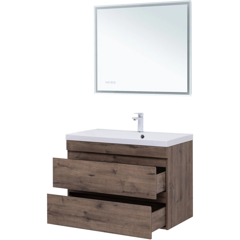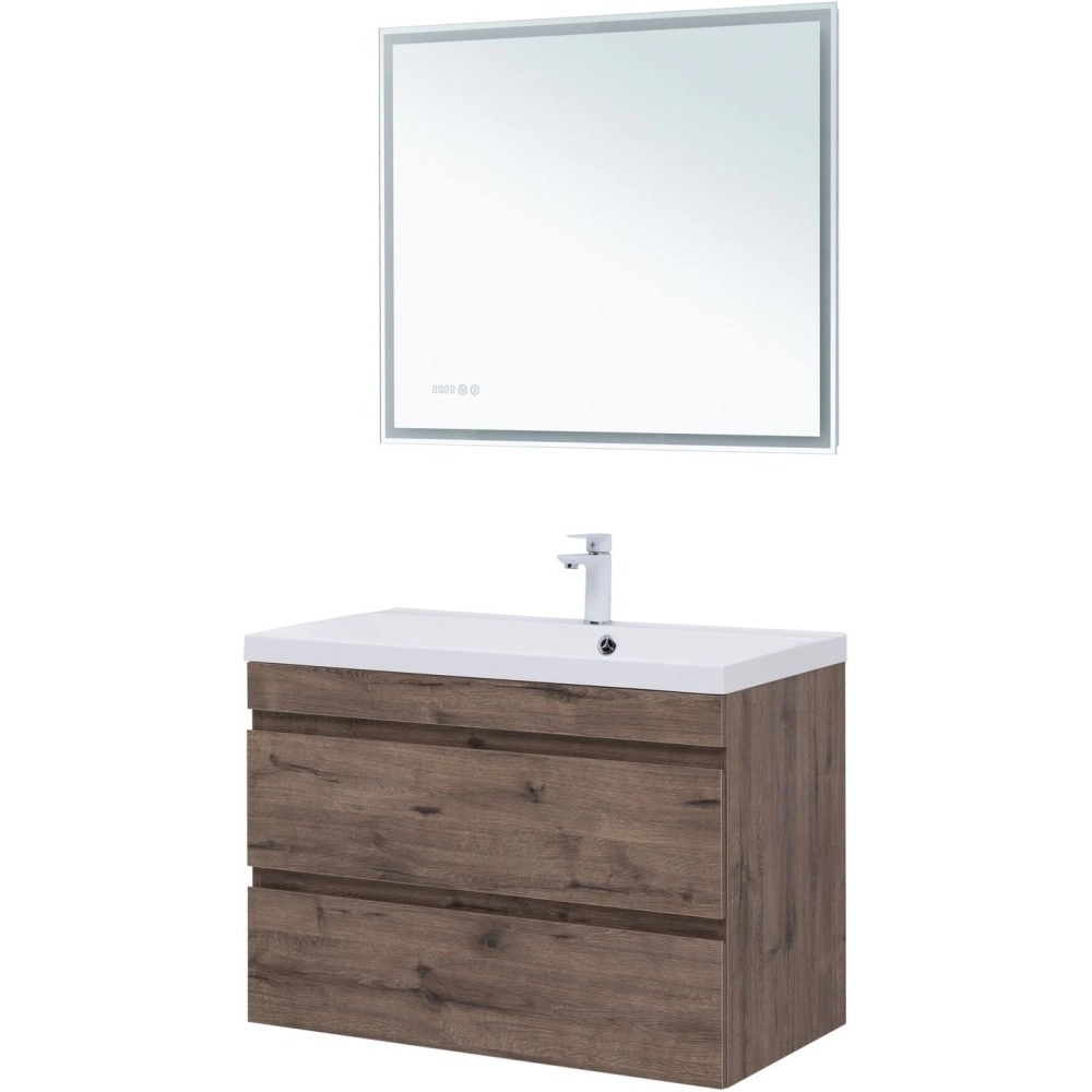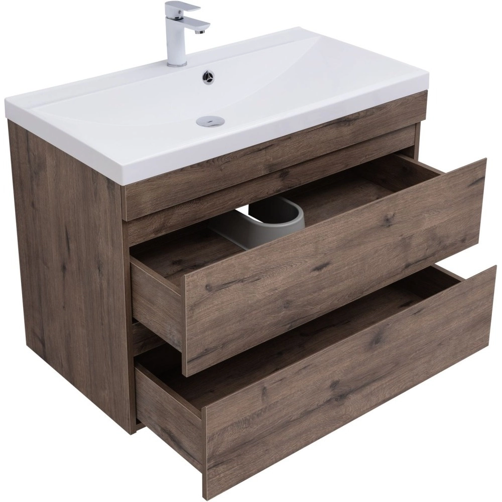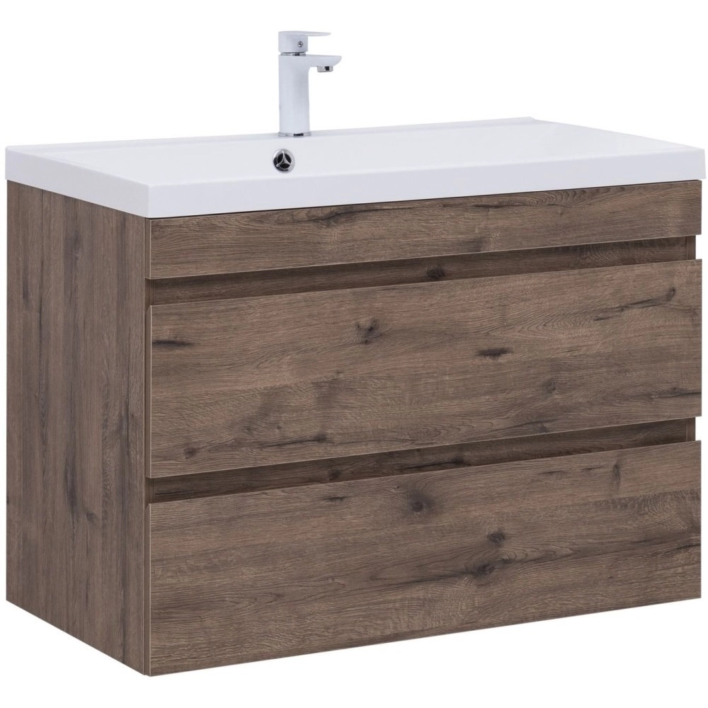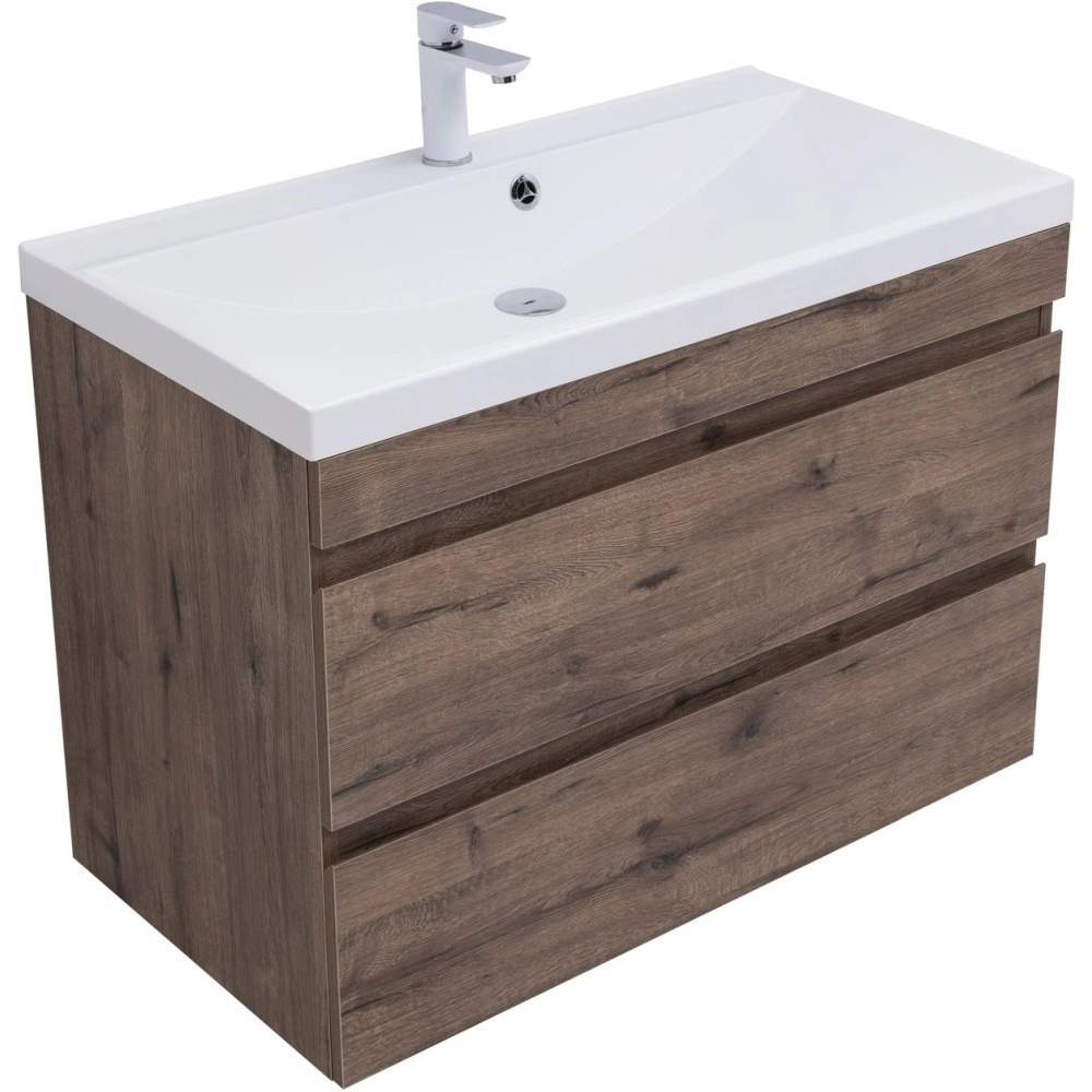 Тумба подвесная с раковиной Aquanet Нота New 90 см 00334193, дуб веллингтон табак