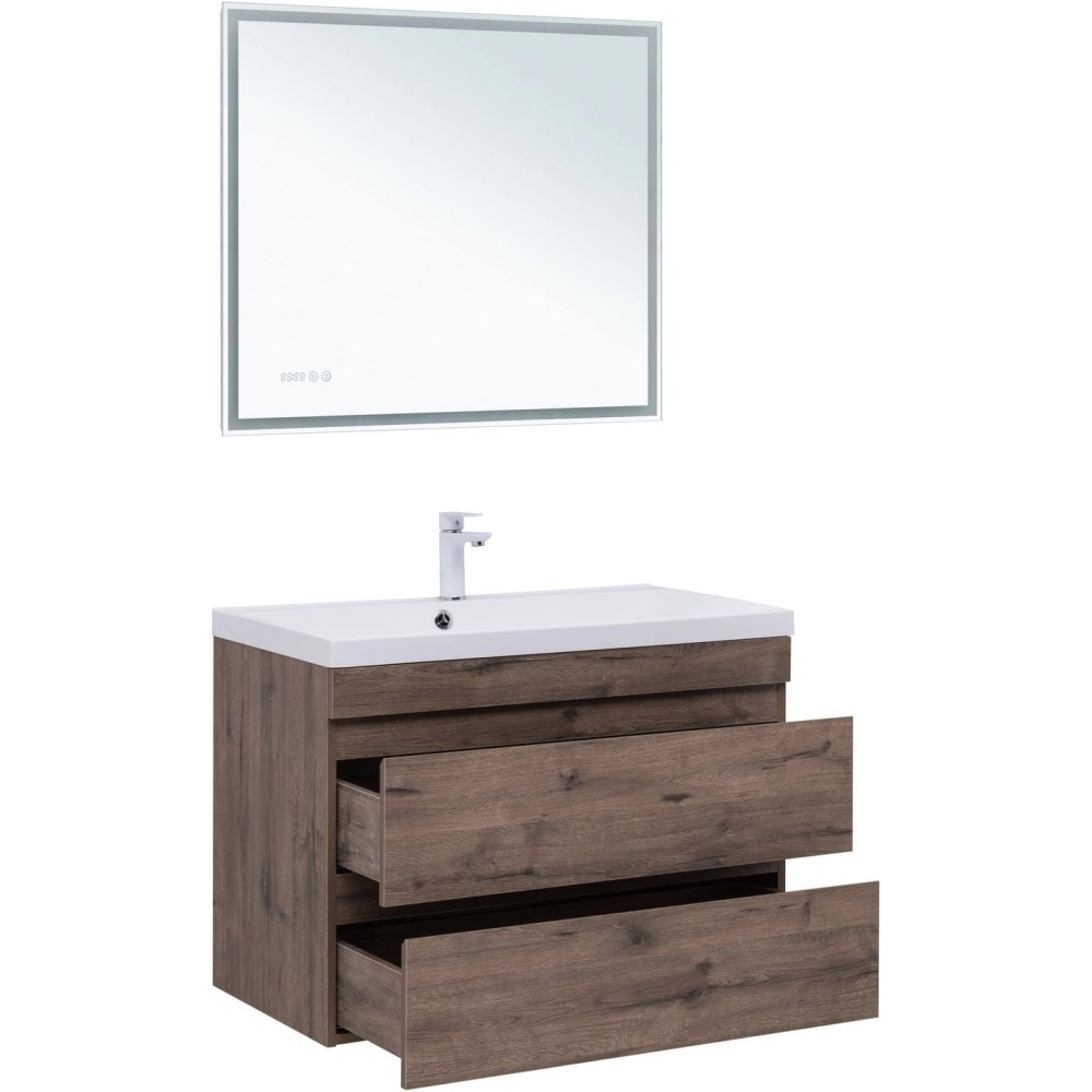 Тумба подвесная Aquanet Нота New 90 см с раковиной Florentina Анита 90 см 10.150.00900.001, 2 выдвижных ящика, цвет дуб веллингтон табак.