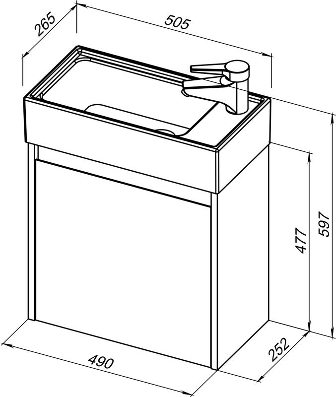 Тумба подвесная Aquanet Nova Lite 50 см 00298853 с раковиной Sanovit Top Counter 50 7045-KL, 1 дверца, цвет белый глянец.