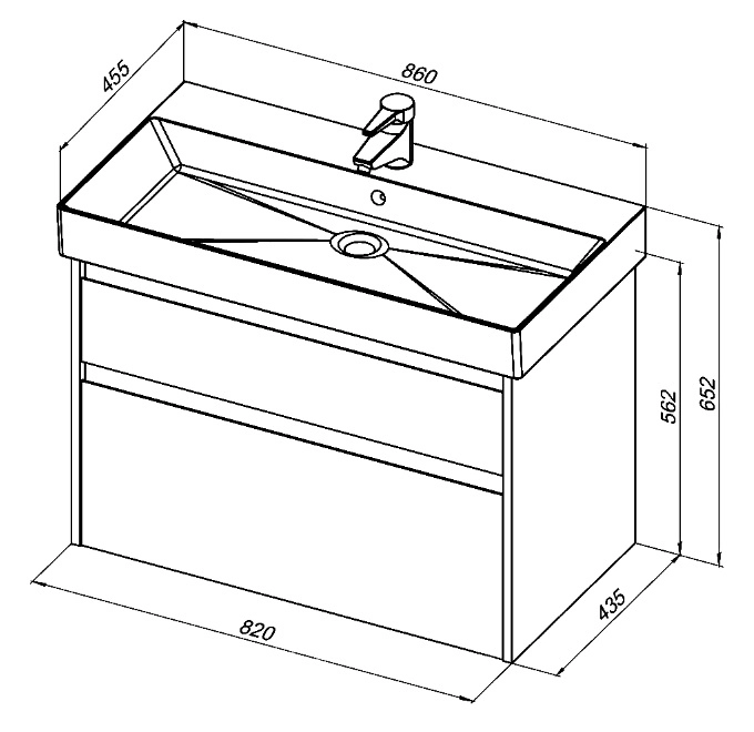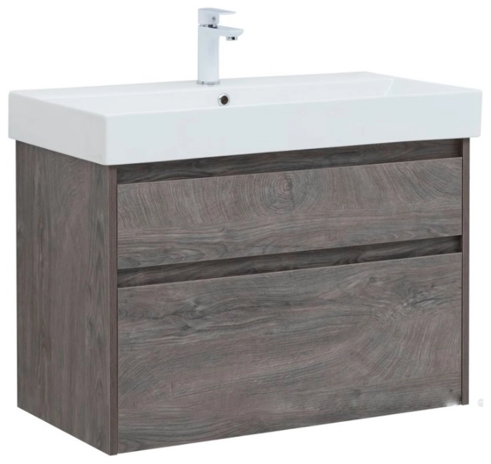 Тумба подвесная Aquanet Nova Lite 85 см с раковиной Aquanet Sanovit Slim Synergy 85 см 17085-KL, 2 выдвижных ящика, цвет дуб рошелье.