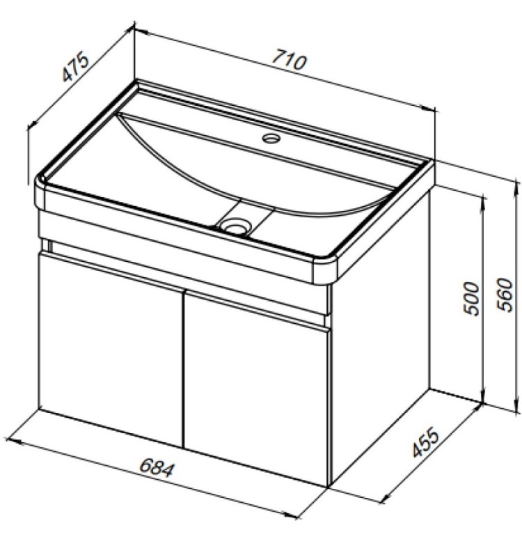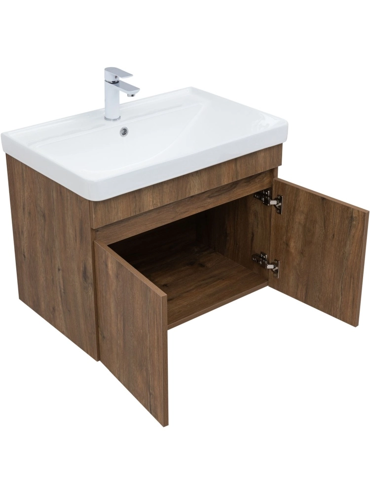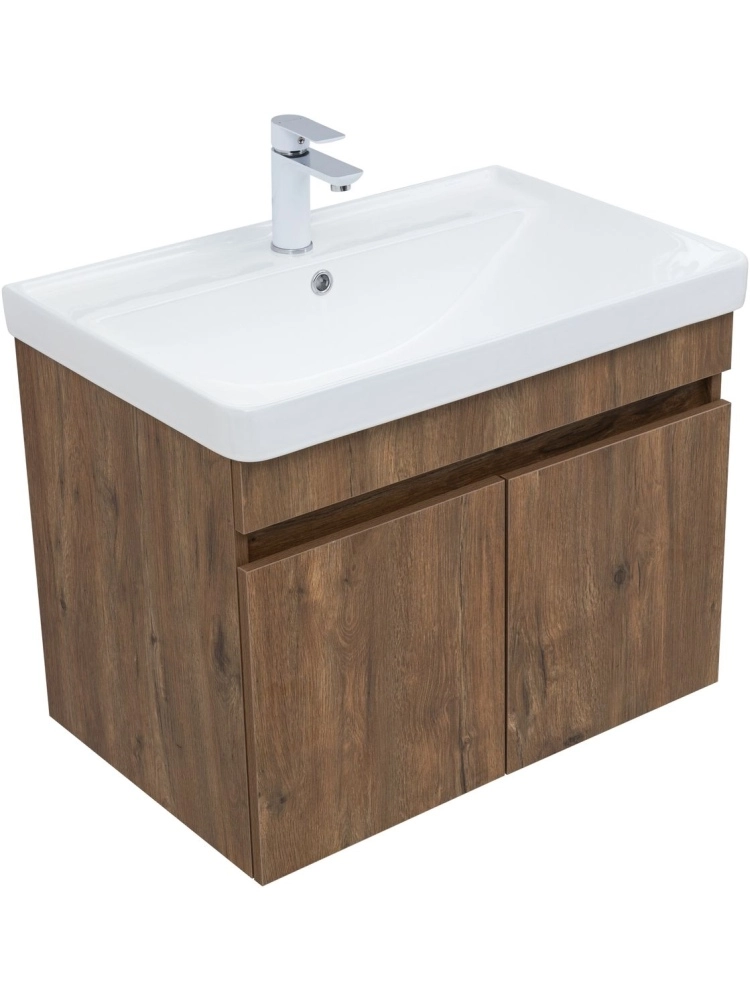 Тумба подвесная Aquanet Оптима 70 см с раковиной Ирис 70 см, 2 дверцы, цвет дуб рустикальный.