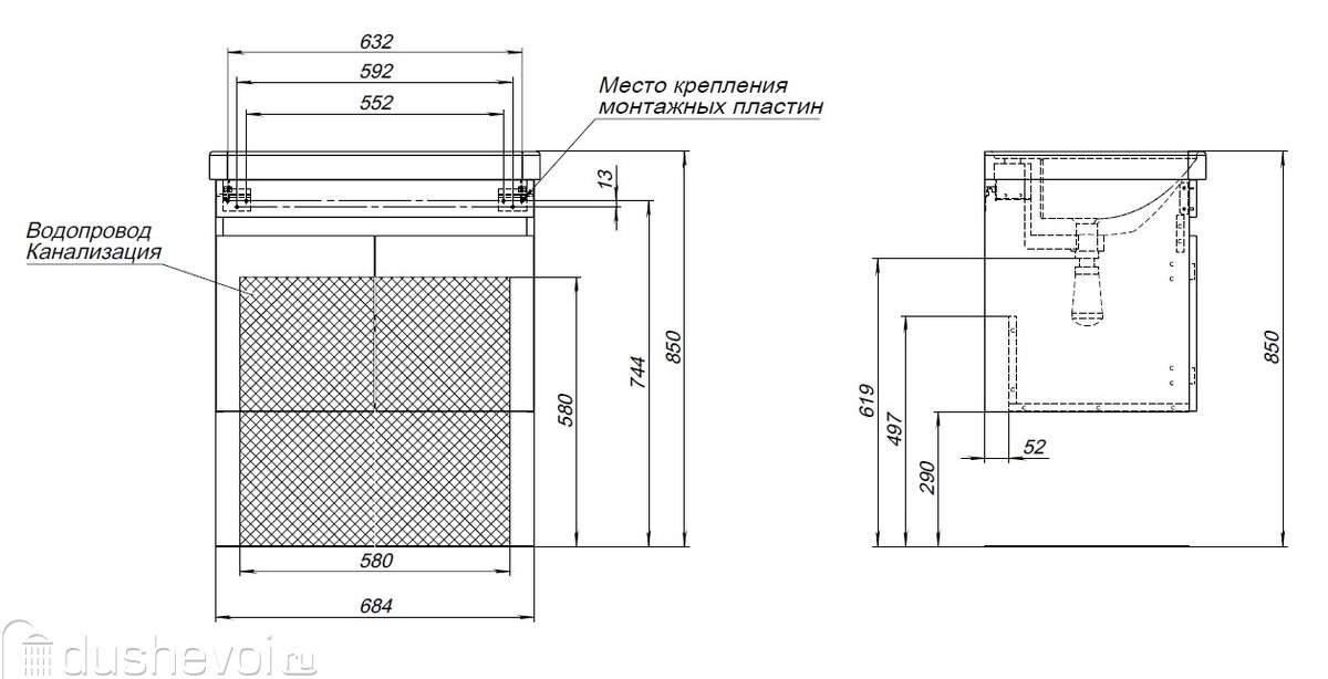 Характеристики тумба с раковиной Aquanet (00344796+00301804)