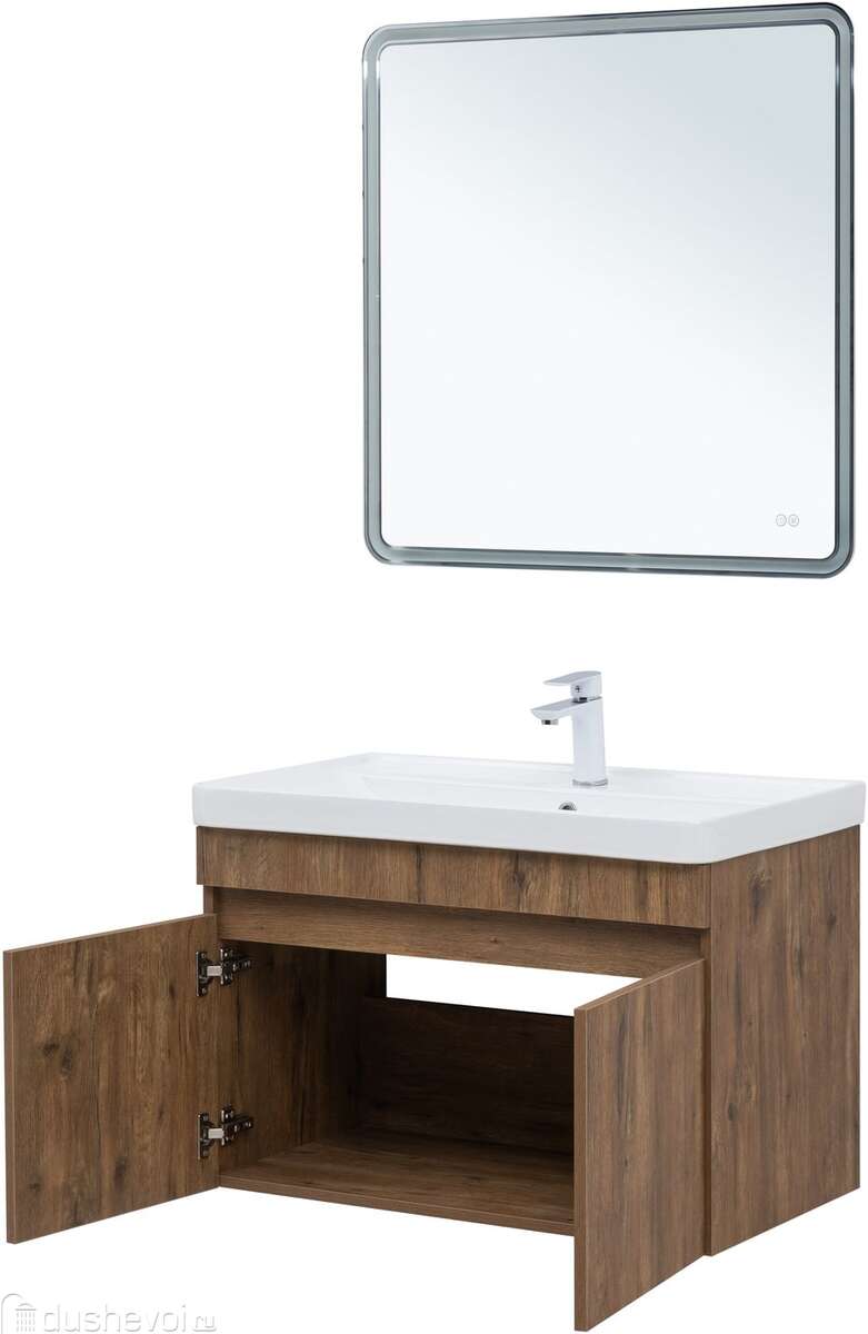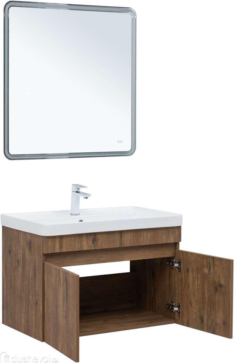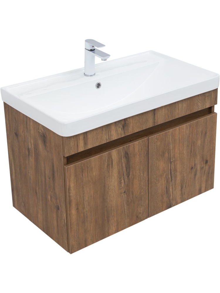 Тумба подвесная Aquanet Оптима 80 см с раковиной Ирис 80 см, 2 дверцы, цвет дуб рустикальный.