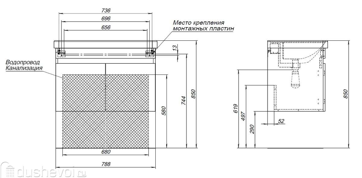 Характеристики тумба с раковиной Aquanet (00344797+00301805)