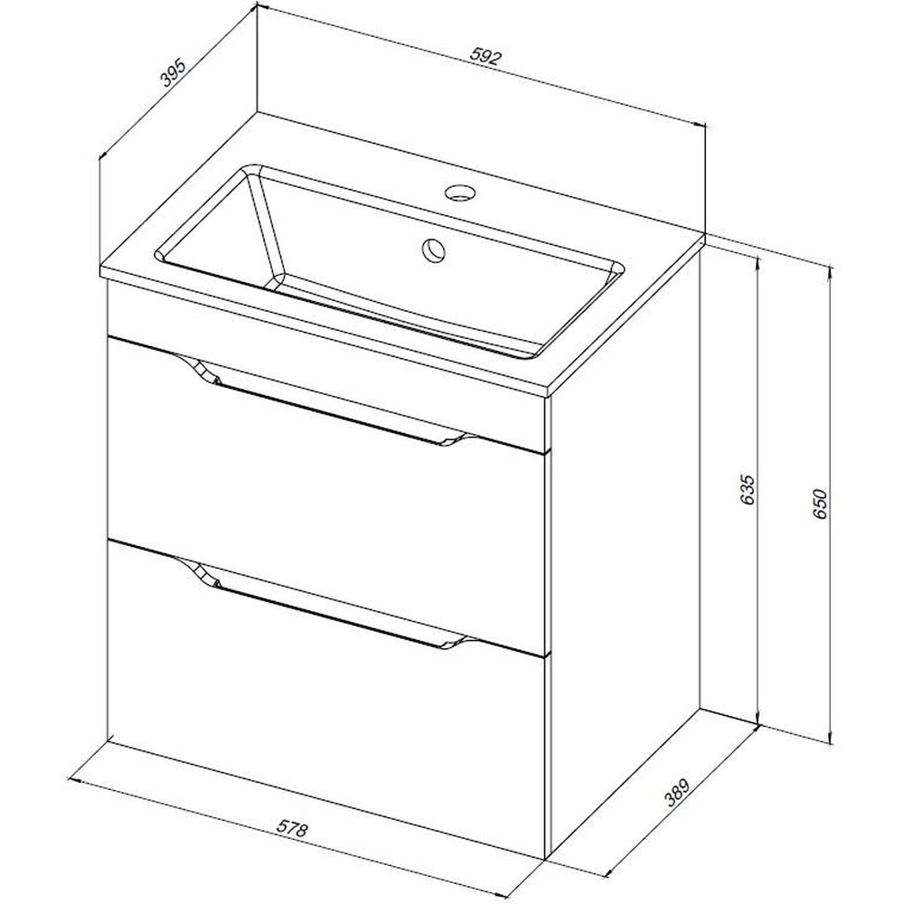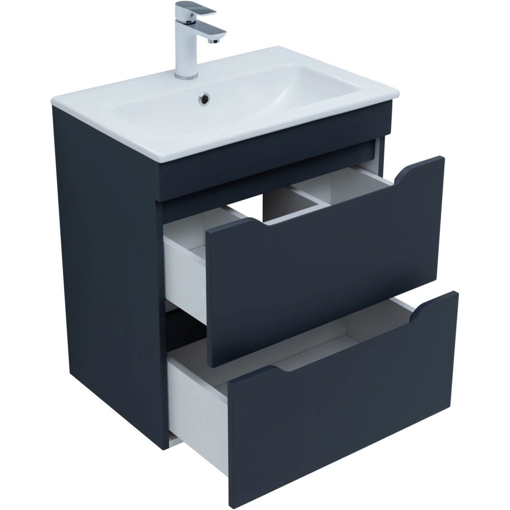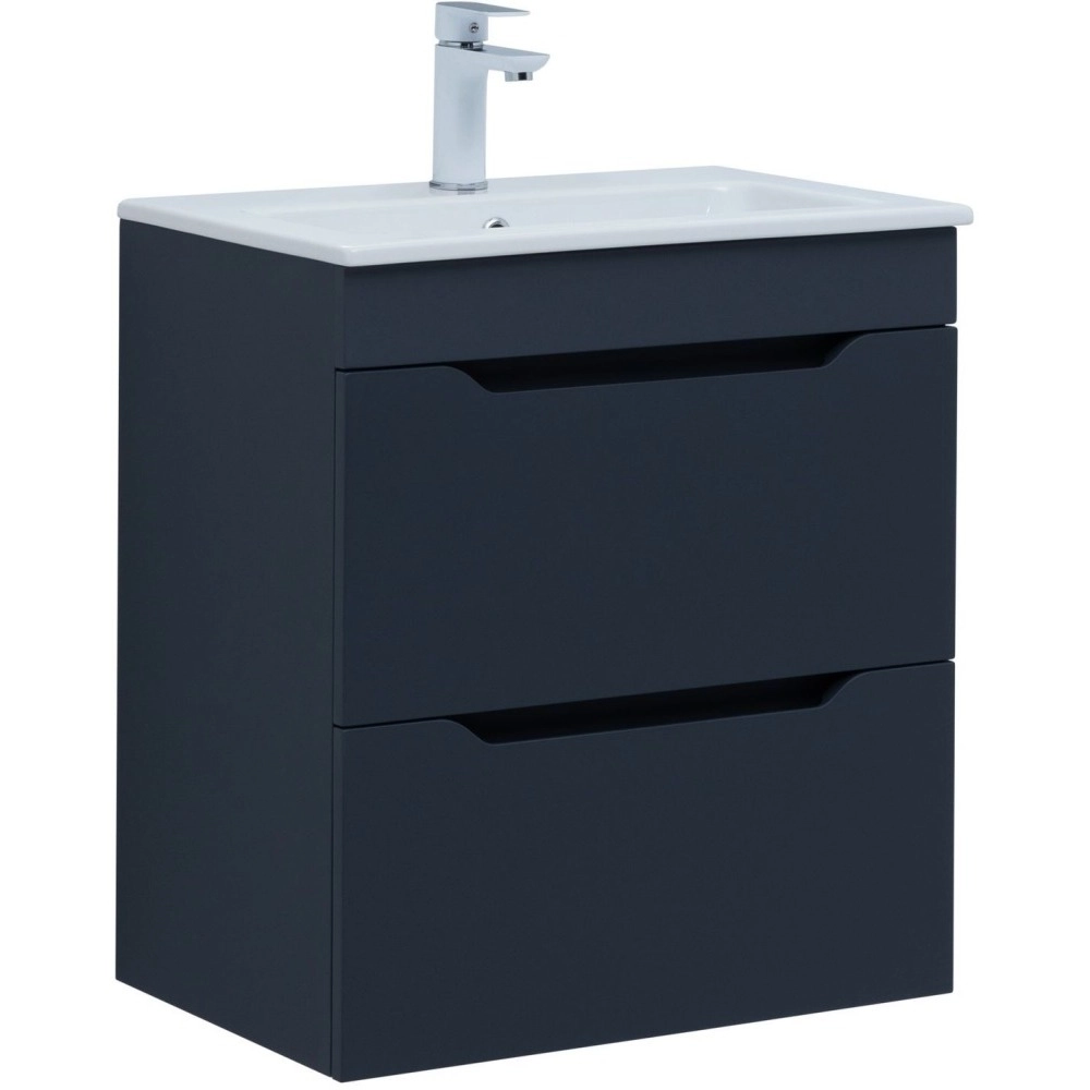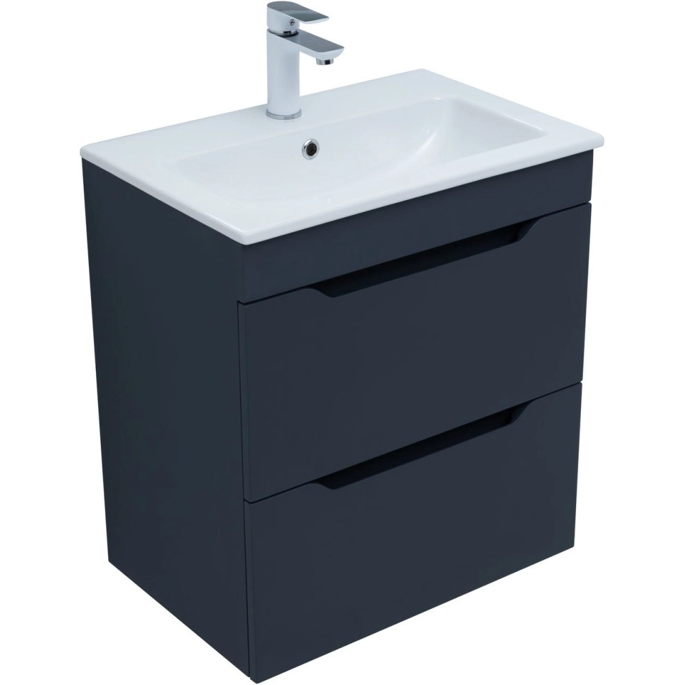 Тумба подвесная Aquanet Практика 60 см с раковиной Aquanet Sanovit Practico 60 см 44060, 2 выдвижных ящика, цвет маренго.