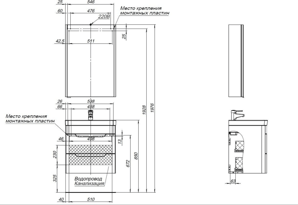 Характеристики тумба с раковиной Aquanet (00288905+182311)
