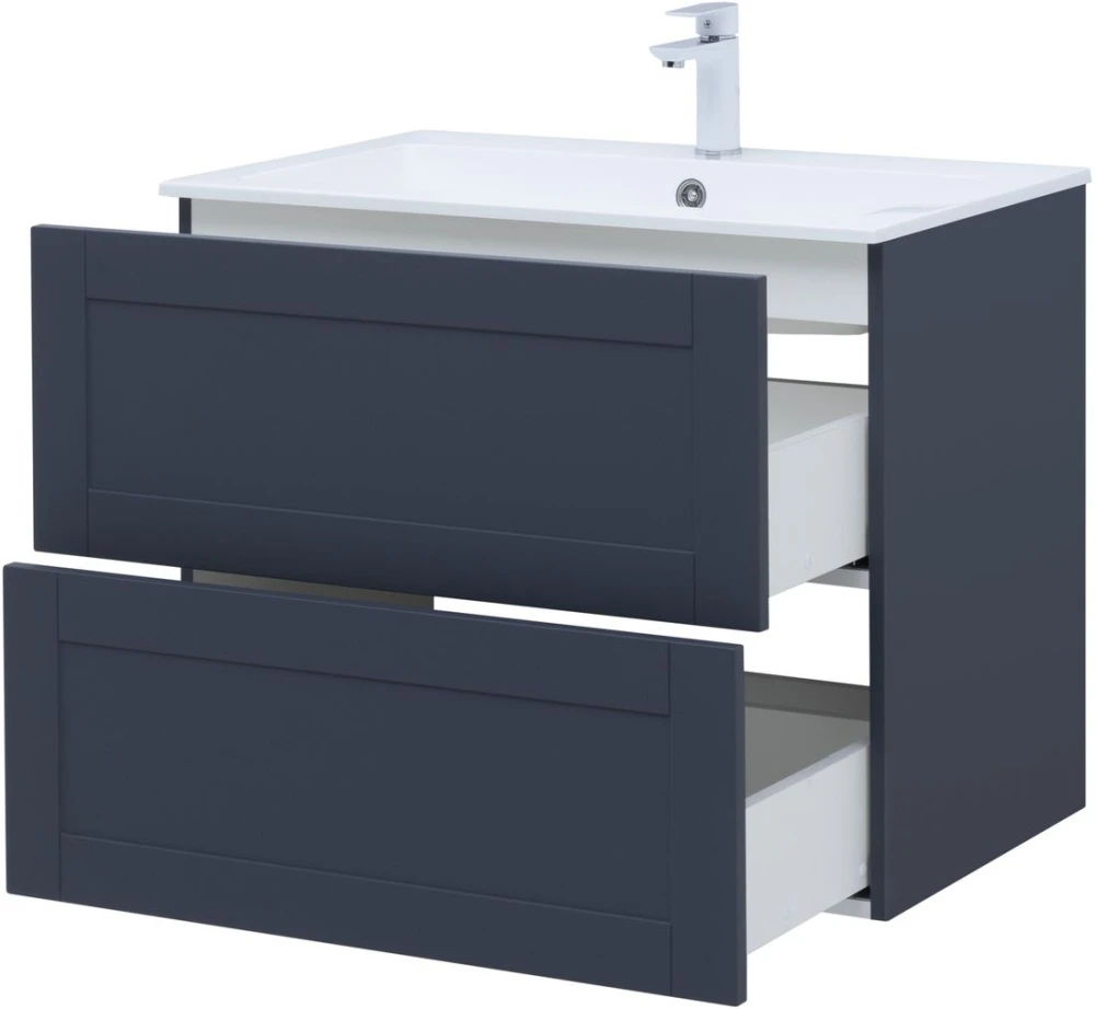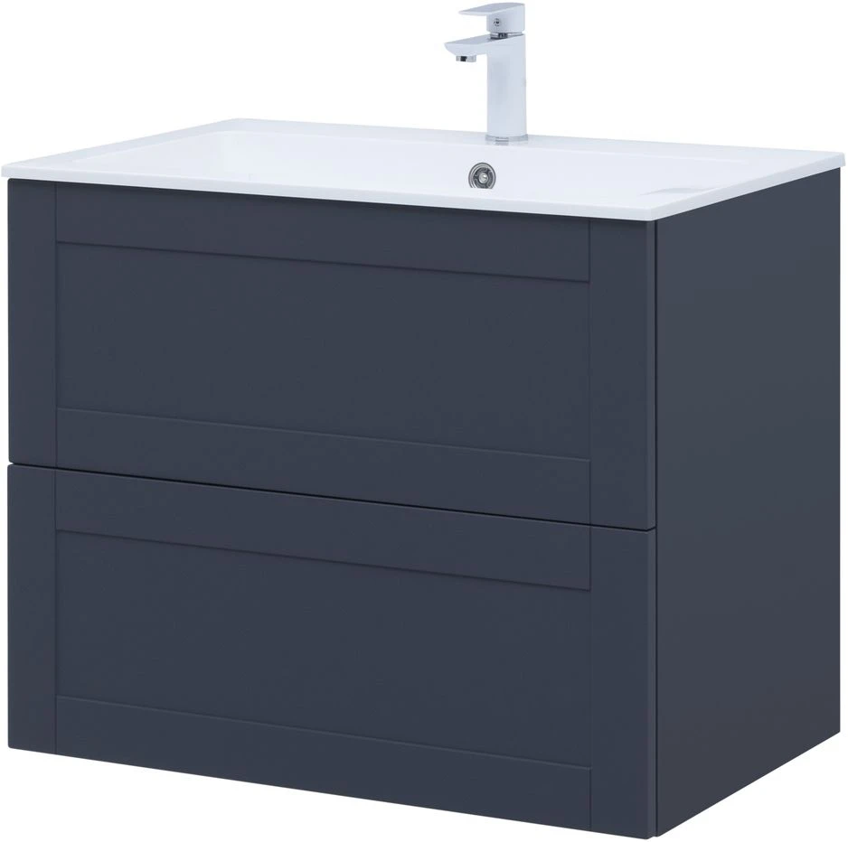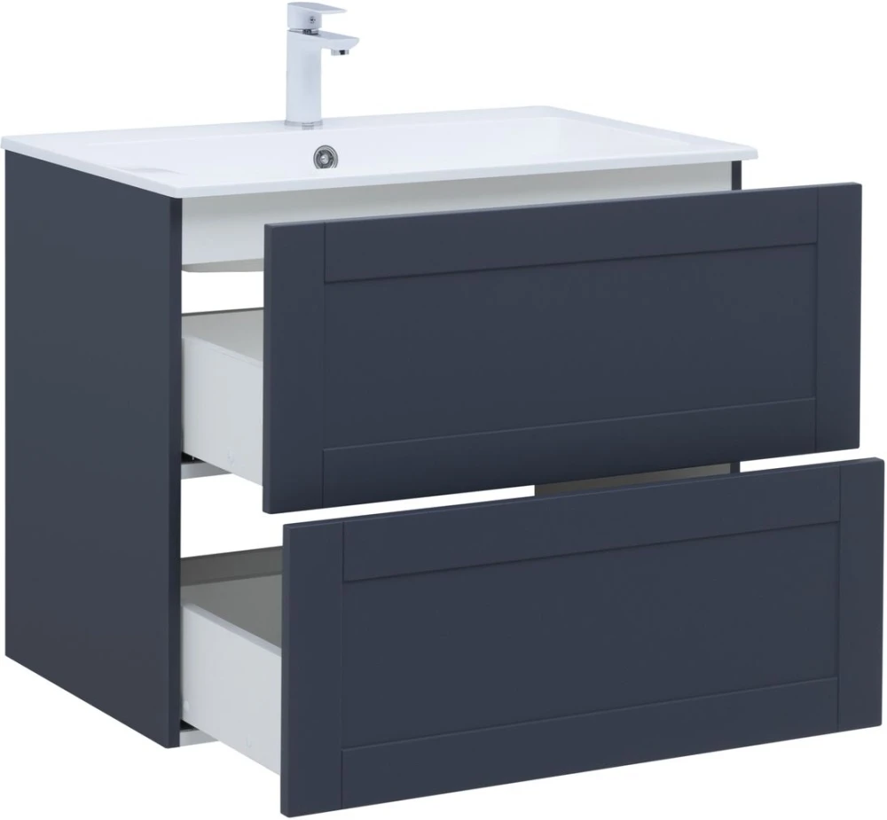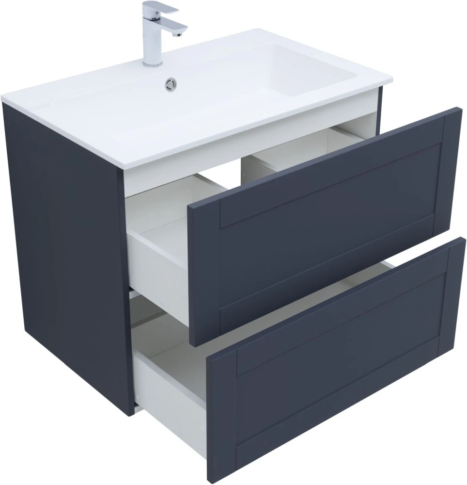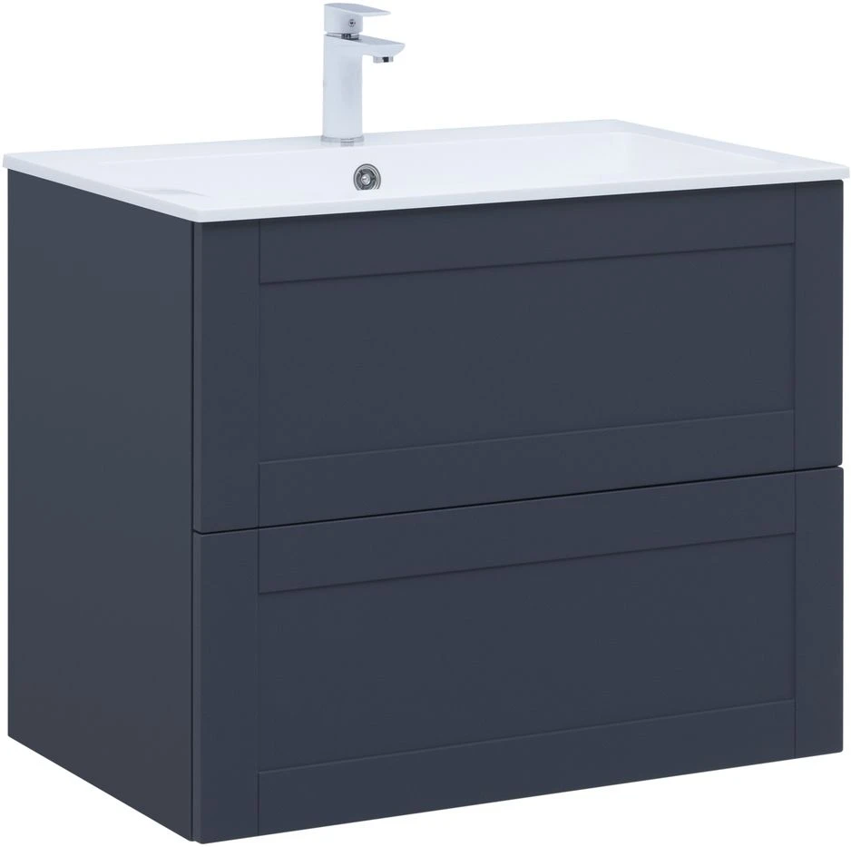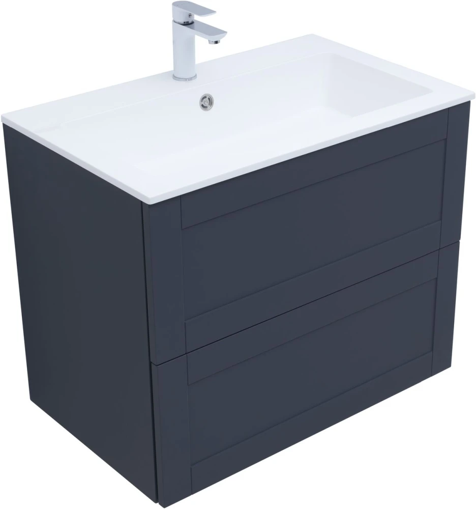 Тумба подвесная Aquanet Терра 80 см с раковиной Aquanet Электра 80 см, 2 выдвижных ящика, цвет маренго.
