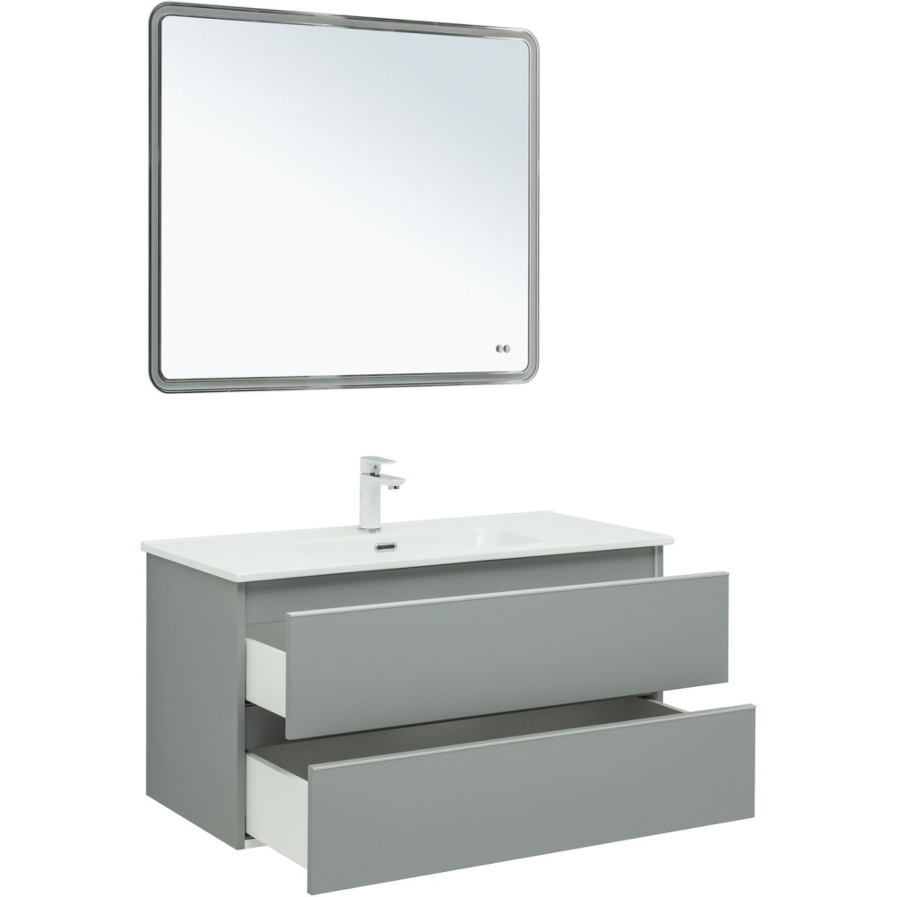Тумба подвесная Aquanet Вега 100 см с раковиной Ирис 100 см, 2 выдвижных ящика, цвет мисти грин.