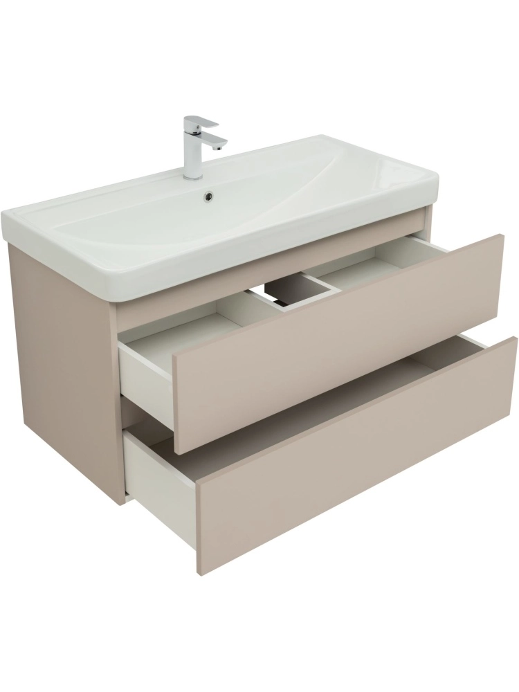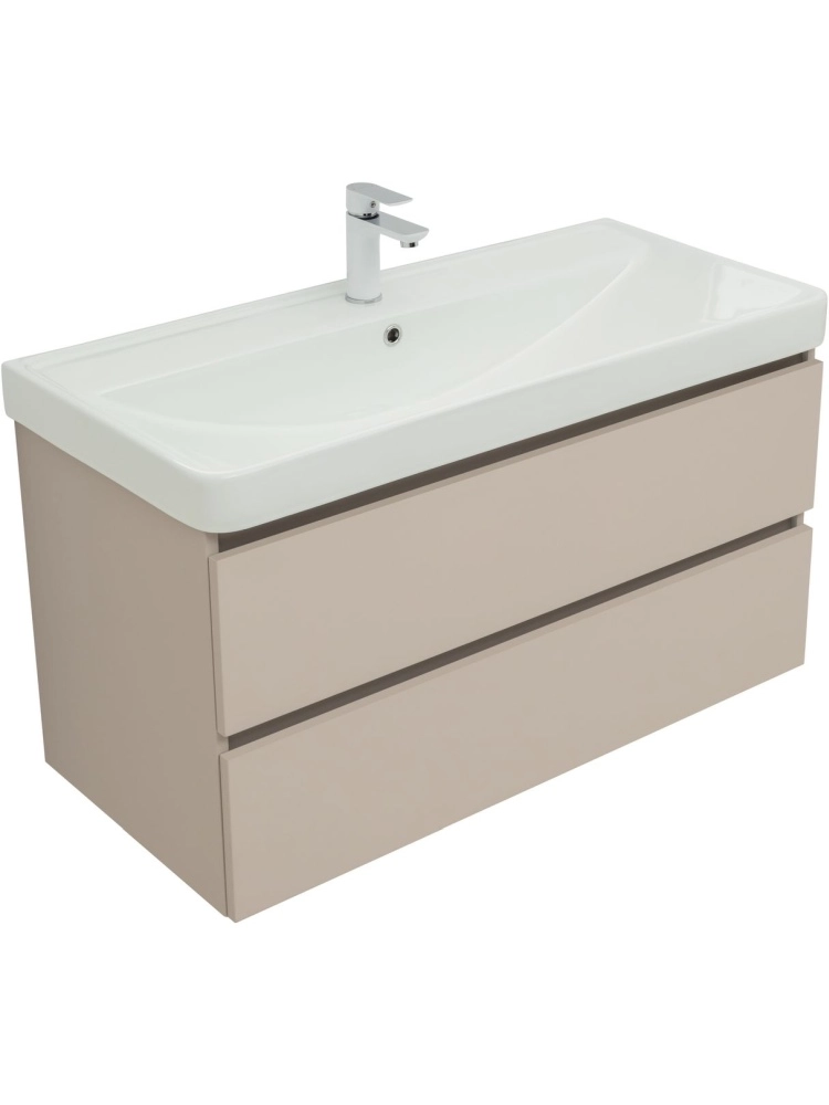 Тумба подвесная Aquanet Вега 2.0 100 см с раковиной Aquanet Flat 100 см, 2 выдвижных ящика, цвет бежевый.
