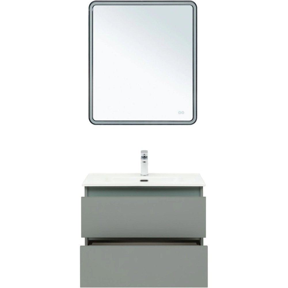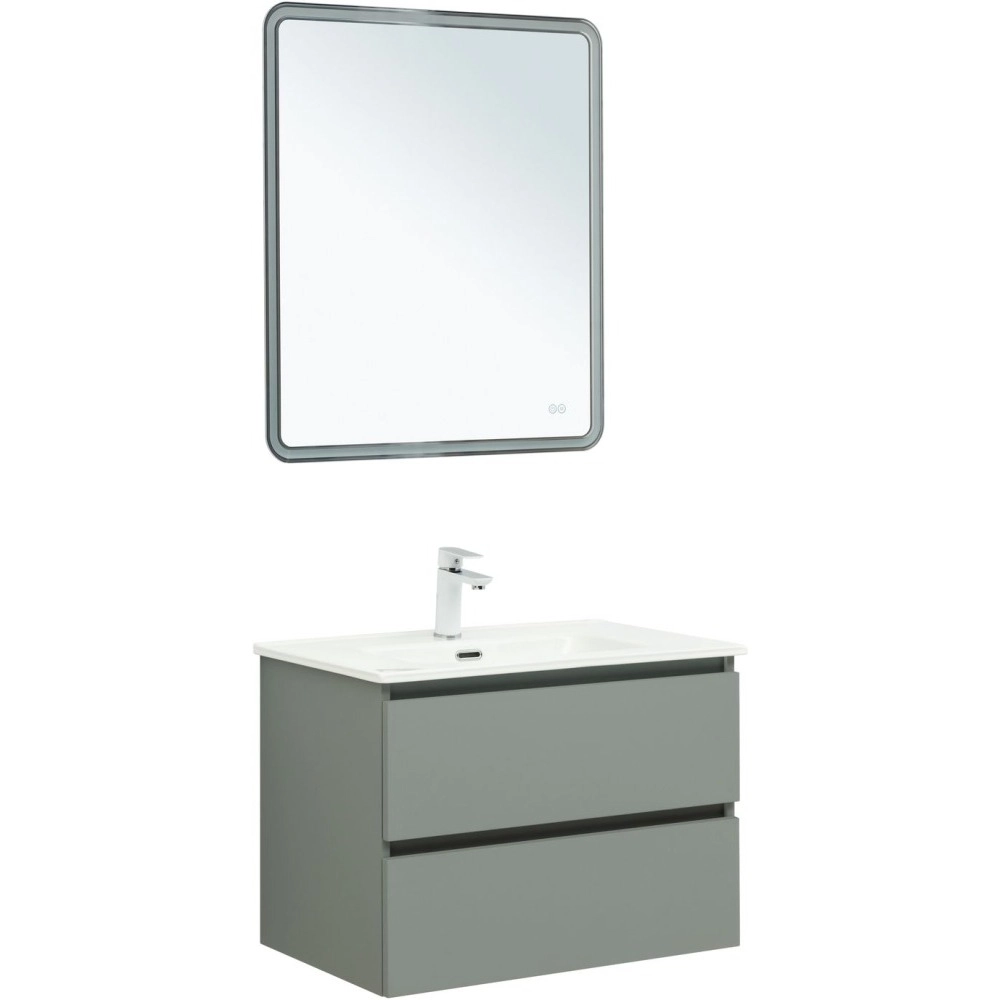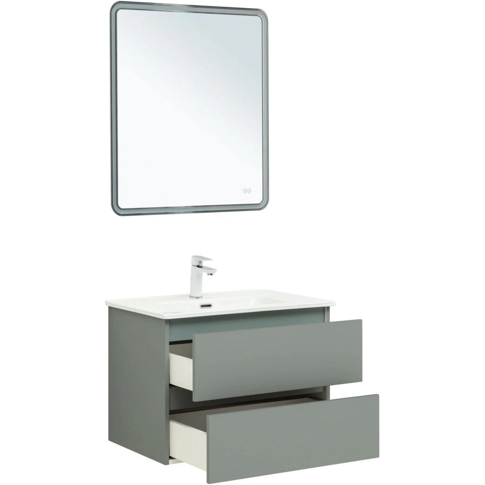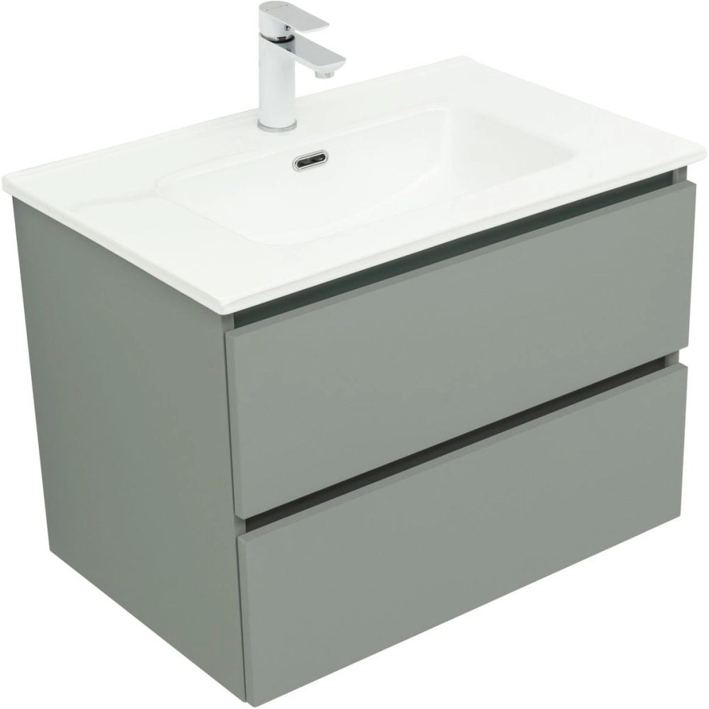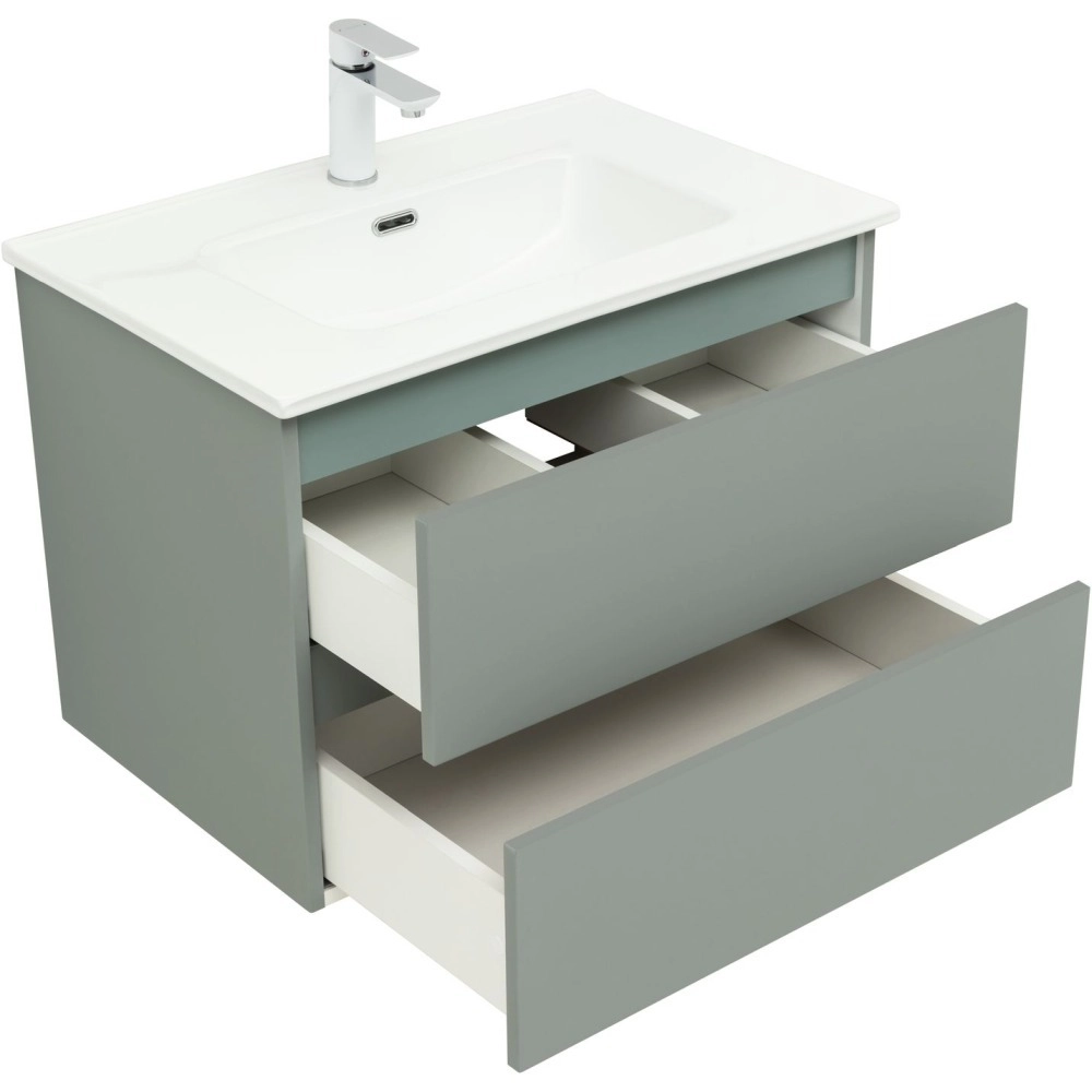 Тумба подвесная Aquanet Вега 2.0 70 см с раковиной Aquanet Flat 70 см, 2 выдвижных ящика, цвет мисти грин.