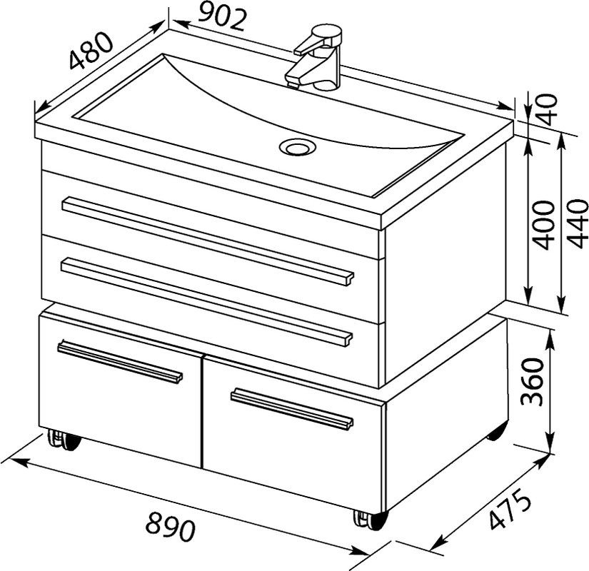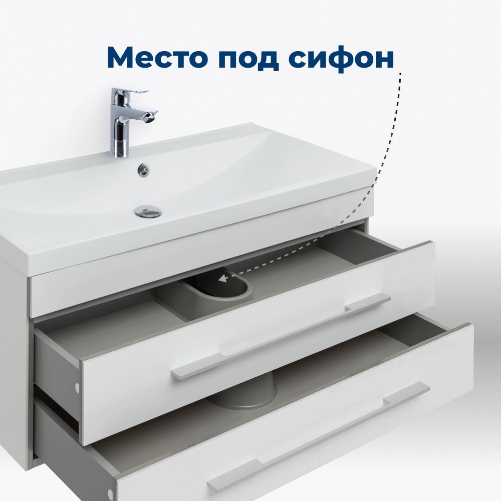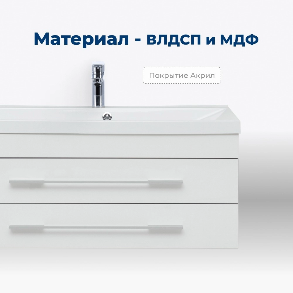 Тумба подвесная Aquanet Верона 90 см с раковиной Aquanet Florentina Анита 90 см 10.150.00900.001, 2 выдвижных ящика, цвет белый.