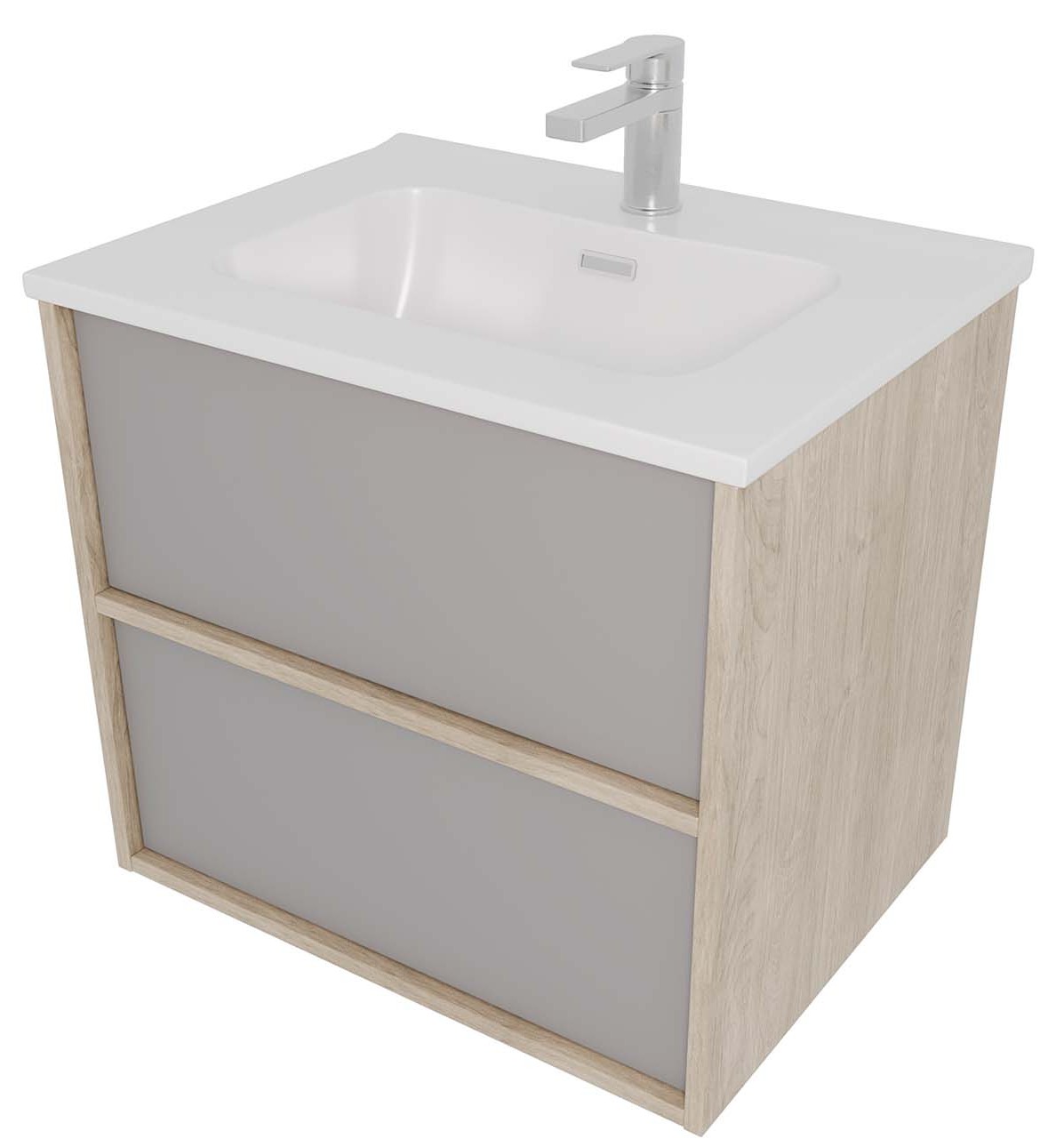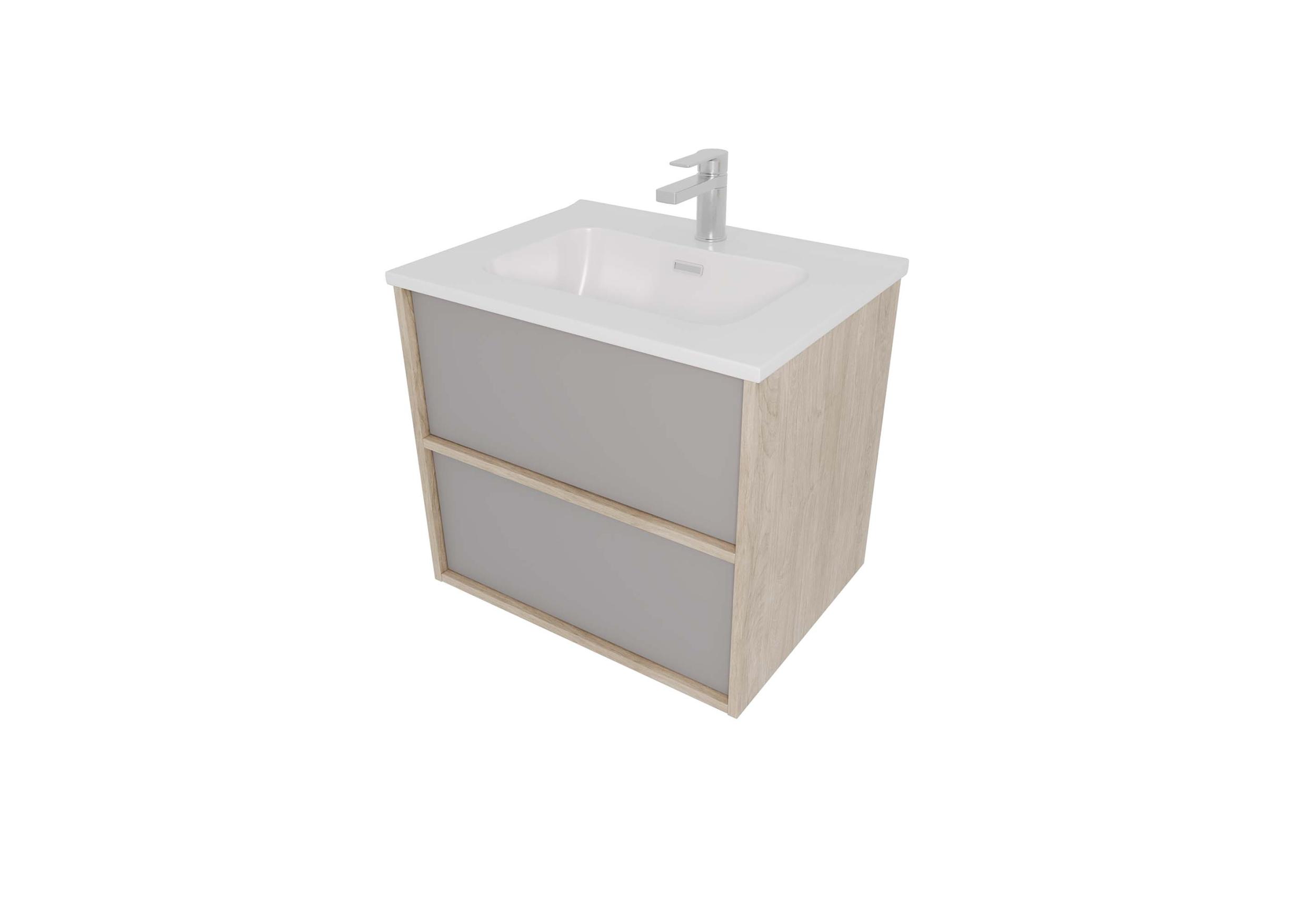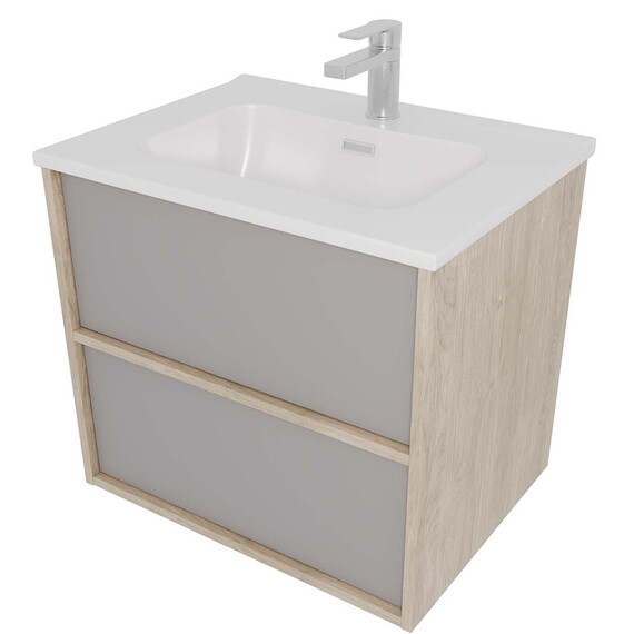 Тумба подвесная с раковиной Aquatek Либра 60 см AQ66060-DO-LG, дуб Давос/серый туман