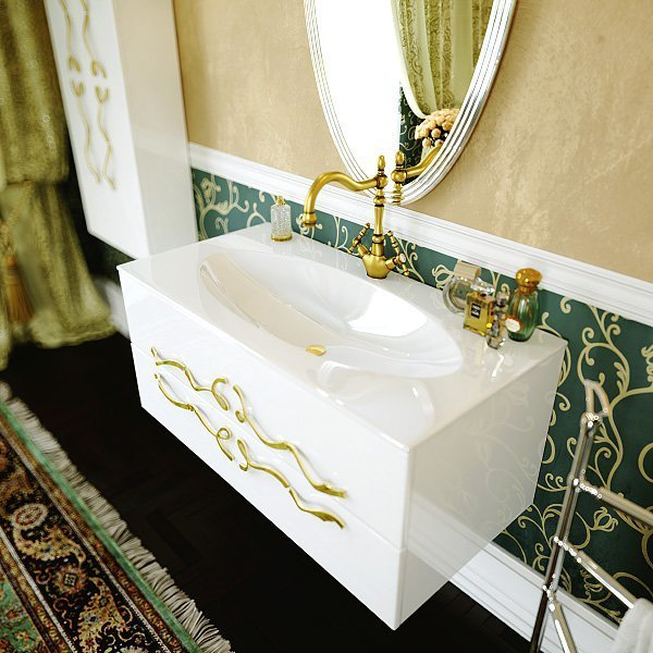 Тумба подвесная Clarberg Due amanti 120 с раковиной Elegance 120 см, цвет белый, золото.