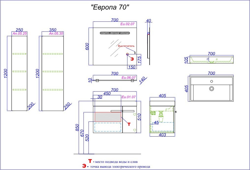 Характеристики тумба с раковиной Aqwella (Eu.01.07)
