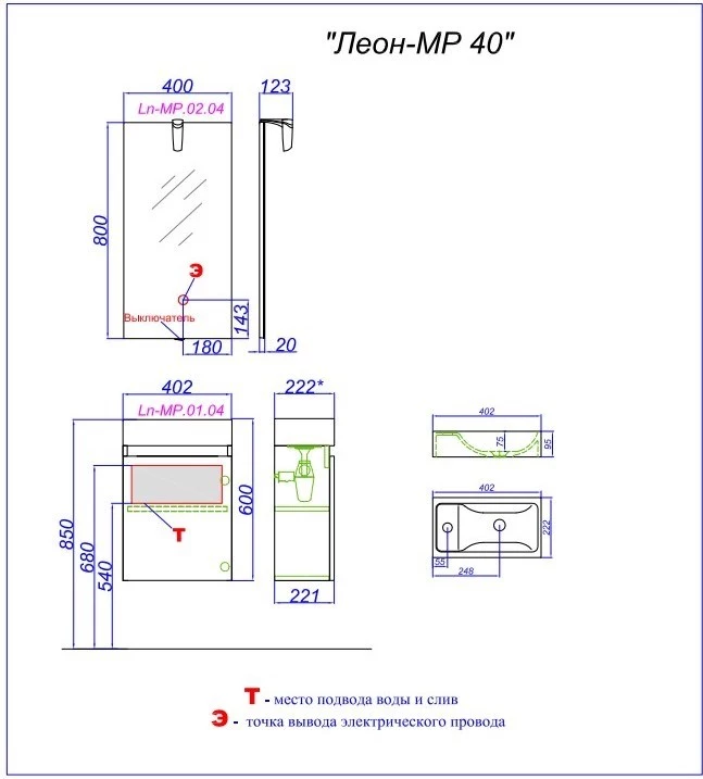 Характеристики тумба с раковиной Aqwella (Ln-MP.01.04/W)