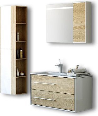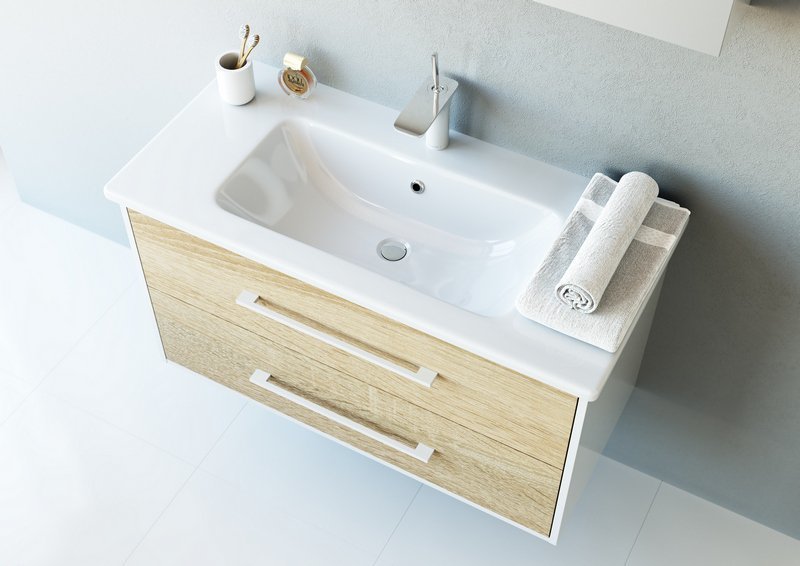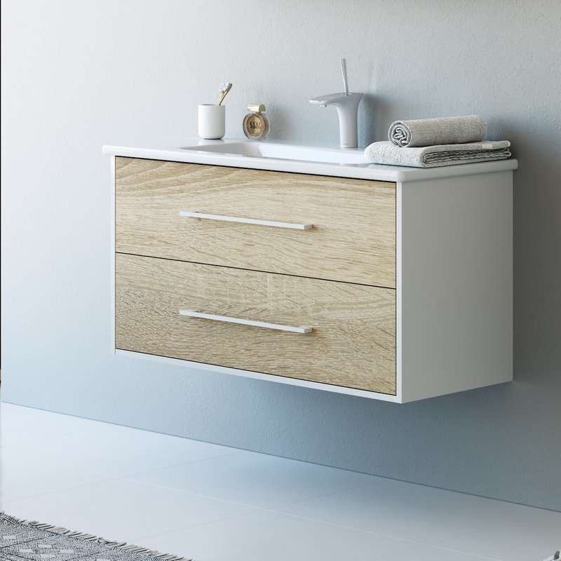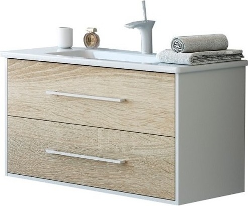 Тумба подвесная с раковиной Aqwella Miami 100 см Mai.01.10, белый/беленый дуб