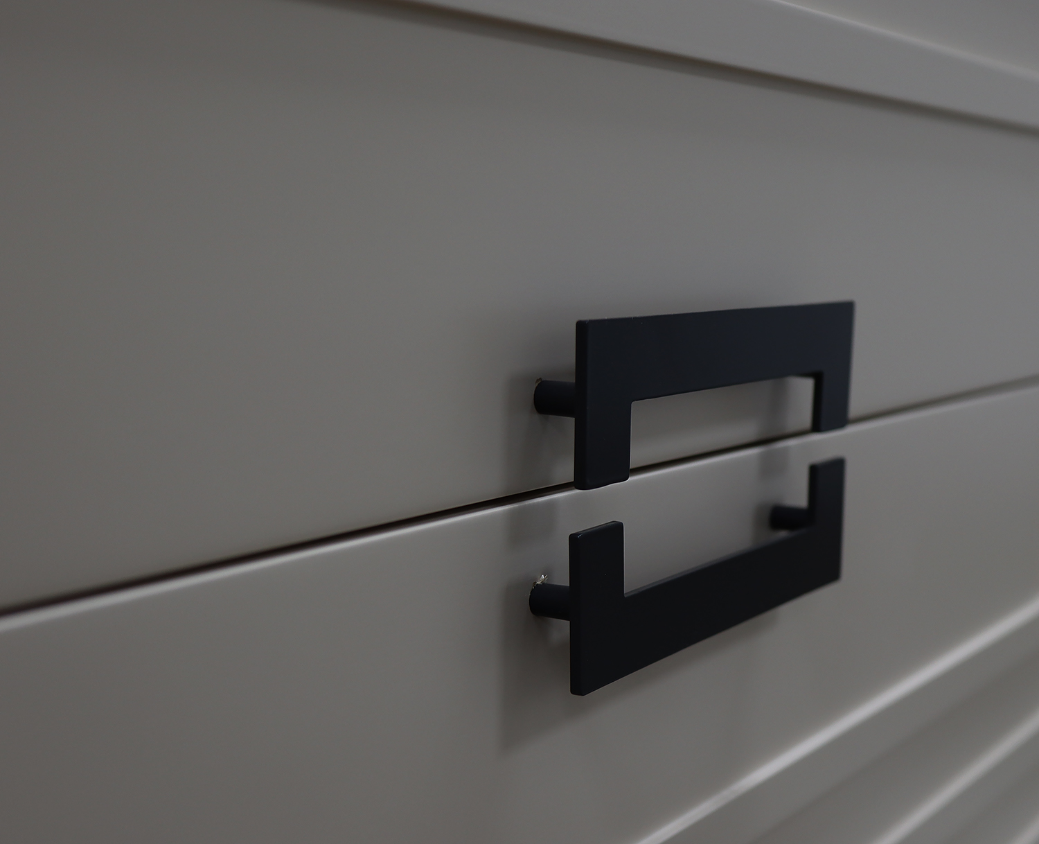 - Лаконичная отделка оборудована стильными квадратными ручками, подчеркивающими неоклассический дизайн, понравится ценителям современной классики.