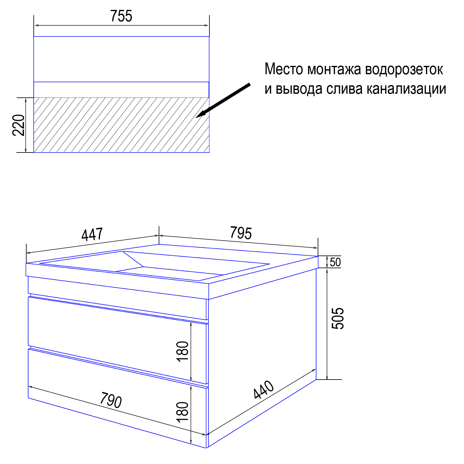 Тумба подвесная с раковиной Azario Эстима 80 см CS00094584, белый глянцевый