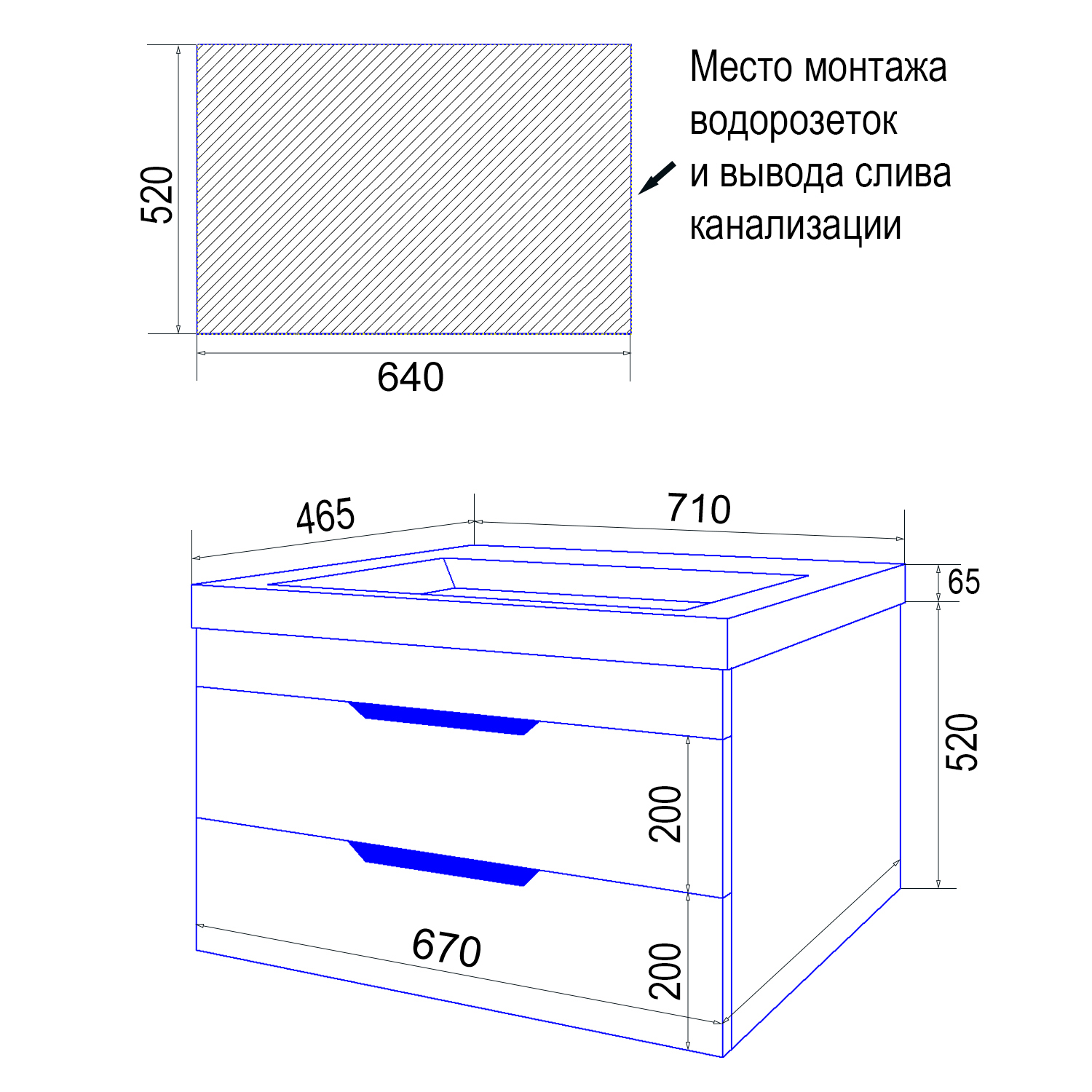 Тумба подвесная Azario Соло CS00092804 с раковиной Tempo 70 см, размер 710x465x585 мм, цвет белый глянцевый.