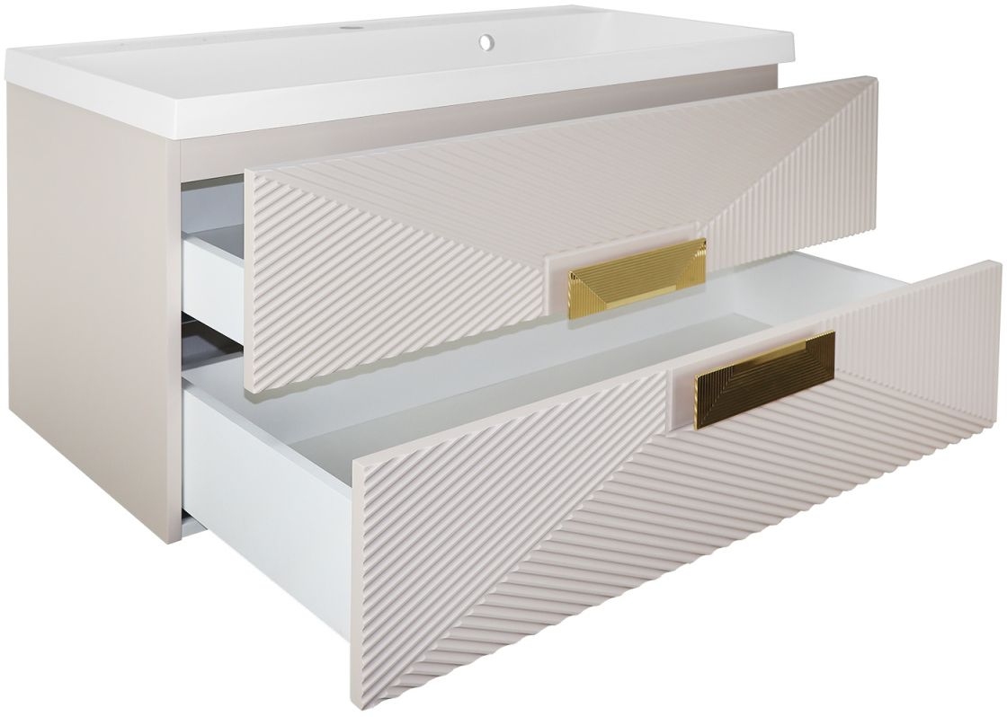Тумба подвесная Azario Zena 100/2 100 см CS00096979 с раковиной Classic 100 см, цвет кашемир, ручка золото.
