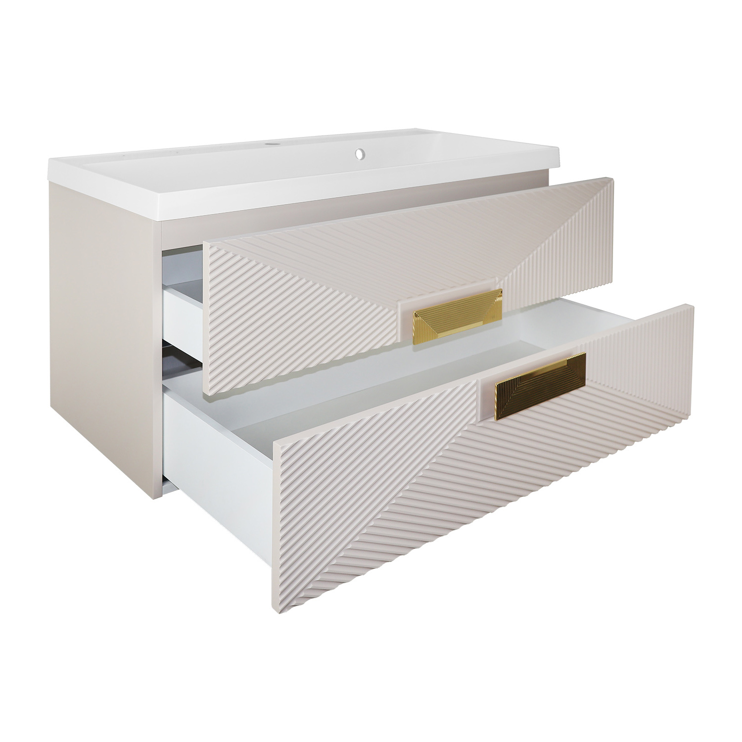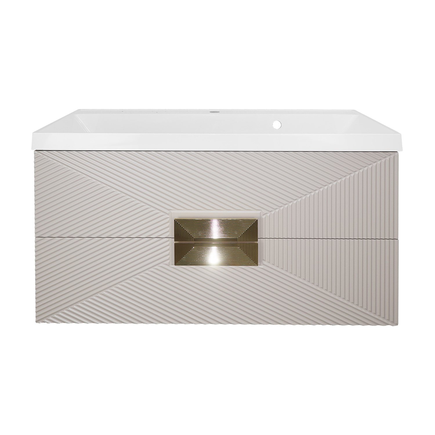 Тумба подвесная Azario Zena 80/2 80 см CS00097029 с раковиной Classic 80 см, цвет кашемир, ручка золото.