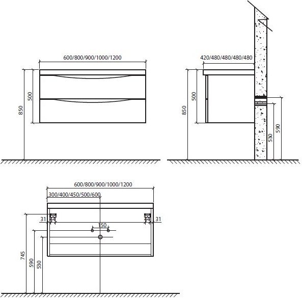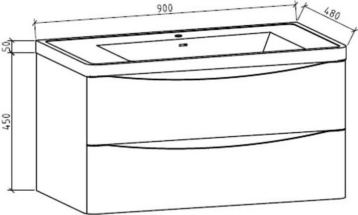 - База под раковину подвесная с двумя выдвижными ящиками и доводчиками