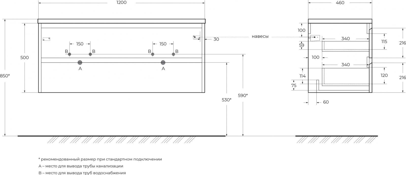 Характеристики тумба с раковиной BelBagno (KRAFT-1200-2C-SO-2-RGB+BB1200-2-ETL)
