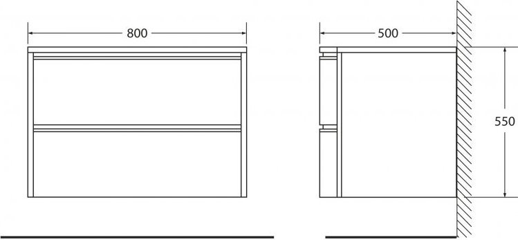 - база под раковину подвесная с двумя выдвижными ящиками и доводчиками;
